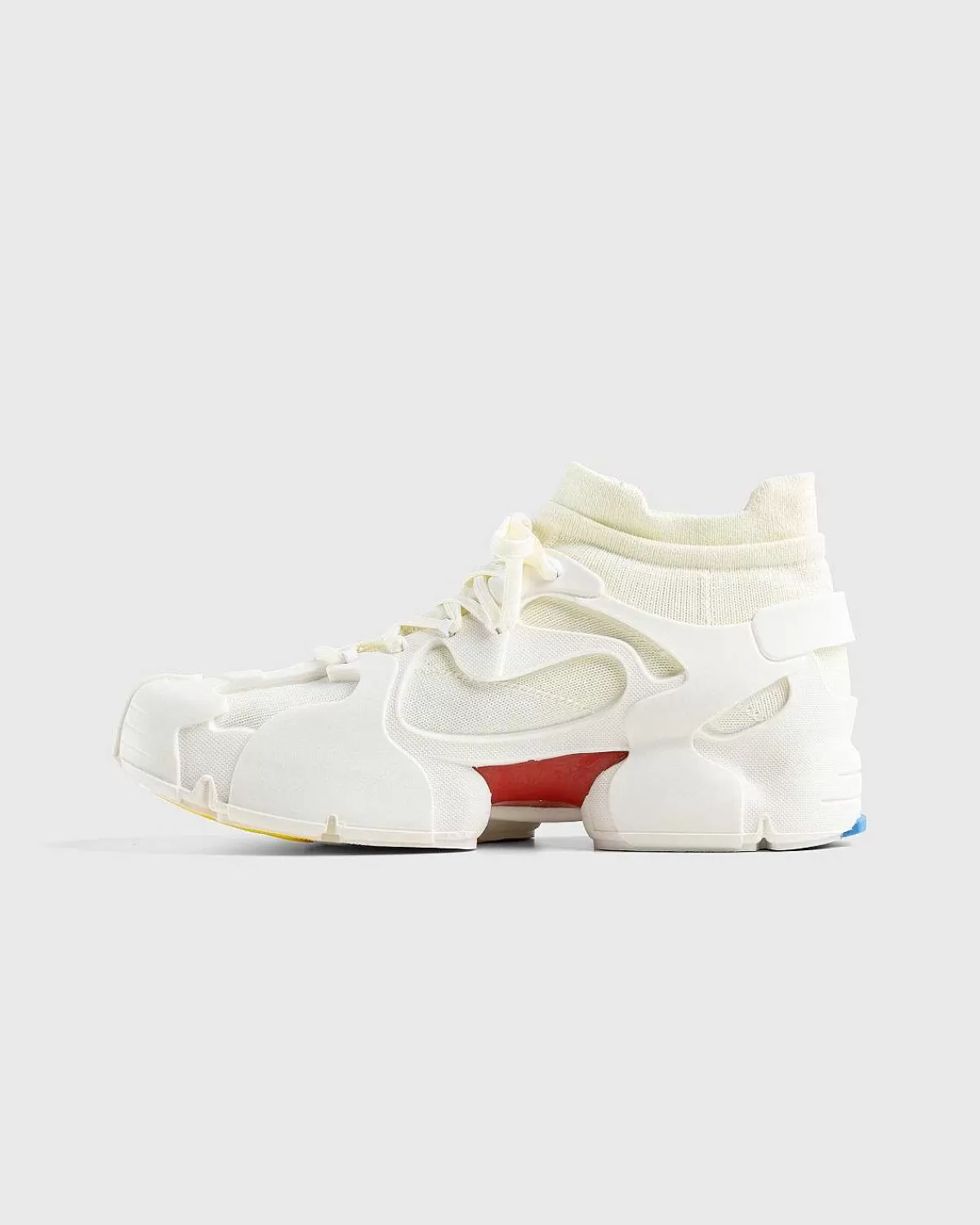 Tossuen Er En Futuristisk Sneaker Fra Camperlab, En Der Er Fuldt Genanvendelig. Silhouetten Er Lavet Uden Nogen Syninger Eller Lim Og Har Et Ydre Bur, Der Omslutter En 3D Strikket, Vandafvisende Sok Fremstillet Af Genbrugsdyr. Den Ydre Del Bringer Strukturel Stabilitet Til Designet, Mens Den Indre Støvle Skaber En Sok-Lignende Pasform. Sneakeren Er Fri For Travl Udvendig Branding For At Give Et Renere Overordnet Look.