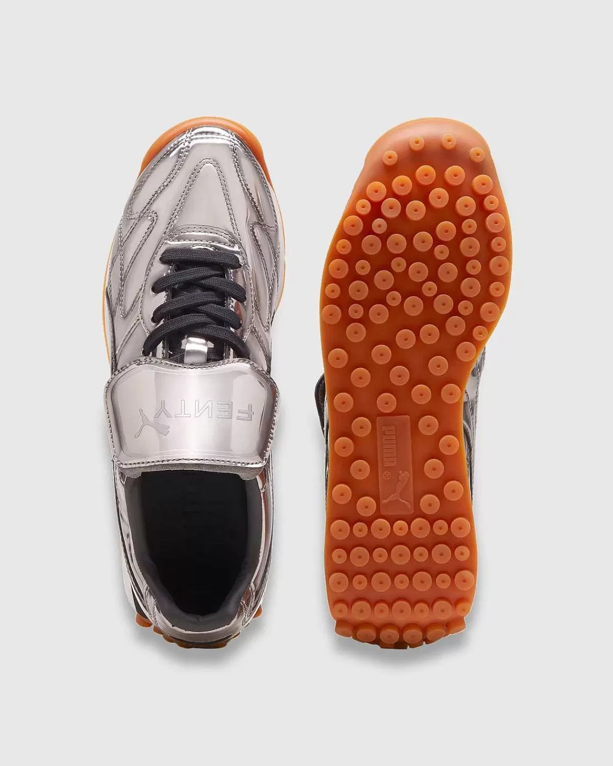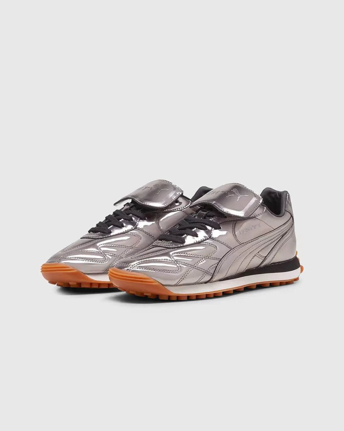 Inspireret Af Det Originale 2001-Design Er Puma Og Fenty Gået Sammen For At Bringe Avanti C Tilbage Som En Del Af Duoens Seneste Samarbejde. Den Nye Sneaker Låner Elementer Fra Både Fodbold- Og Livsstilssilhuetter Med En Overdel I Krom, Syet Læder Med En Fastgjort Fold-Over-Tunge. Yderligere Detaljer Inkluderer Laser-Ætsede Fenty-Logoer Overalt Sammen Med En Gummi-Gummi-Ydersål Og Mærket Fenty-Fodseng.