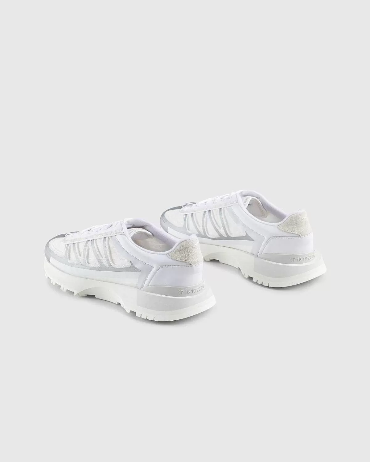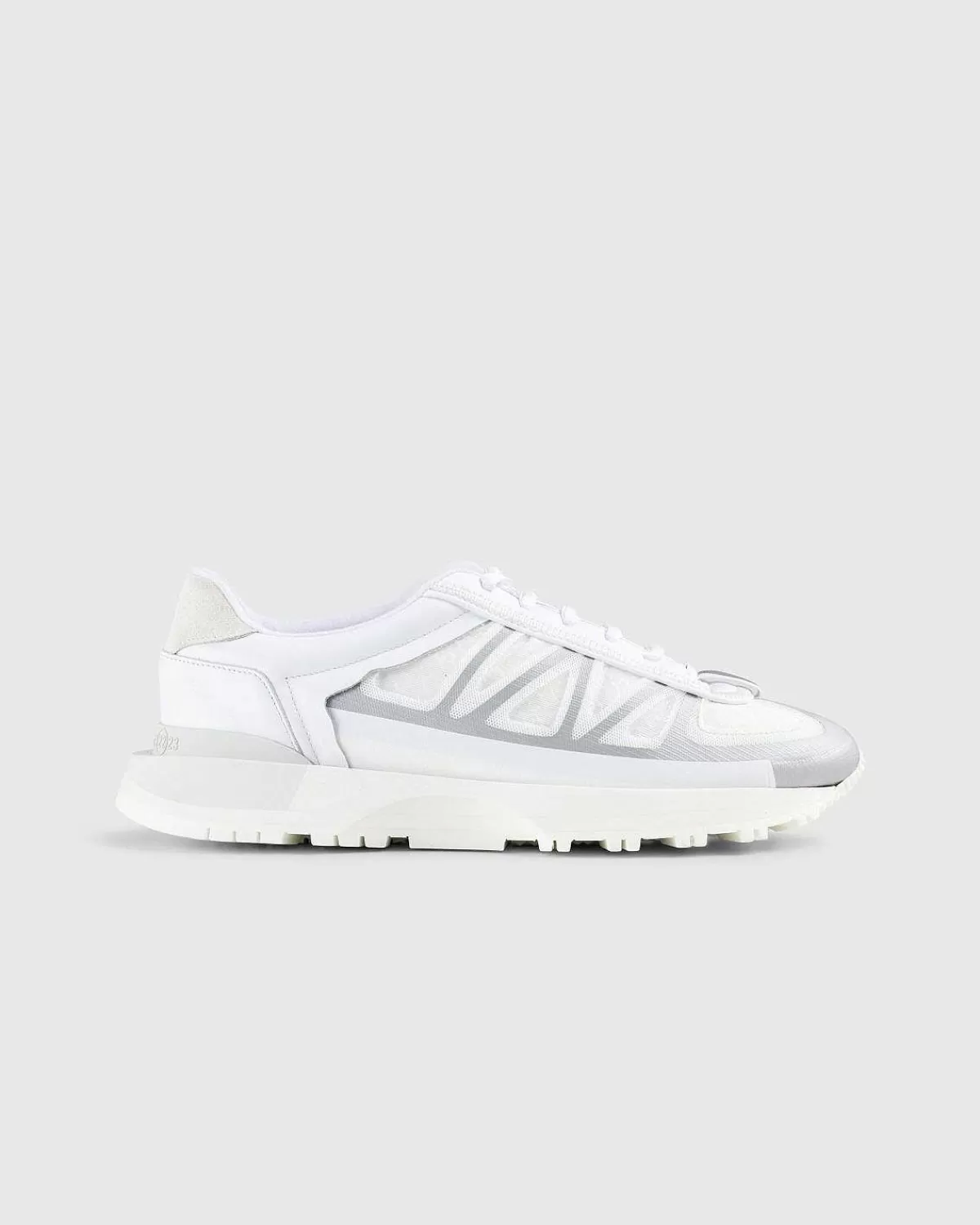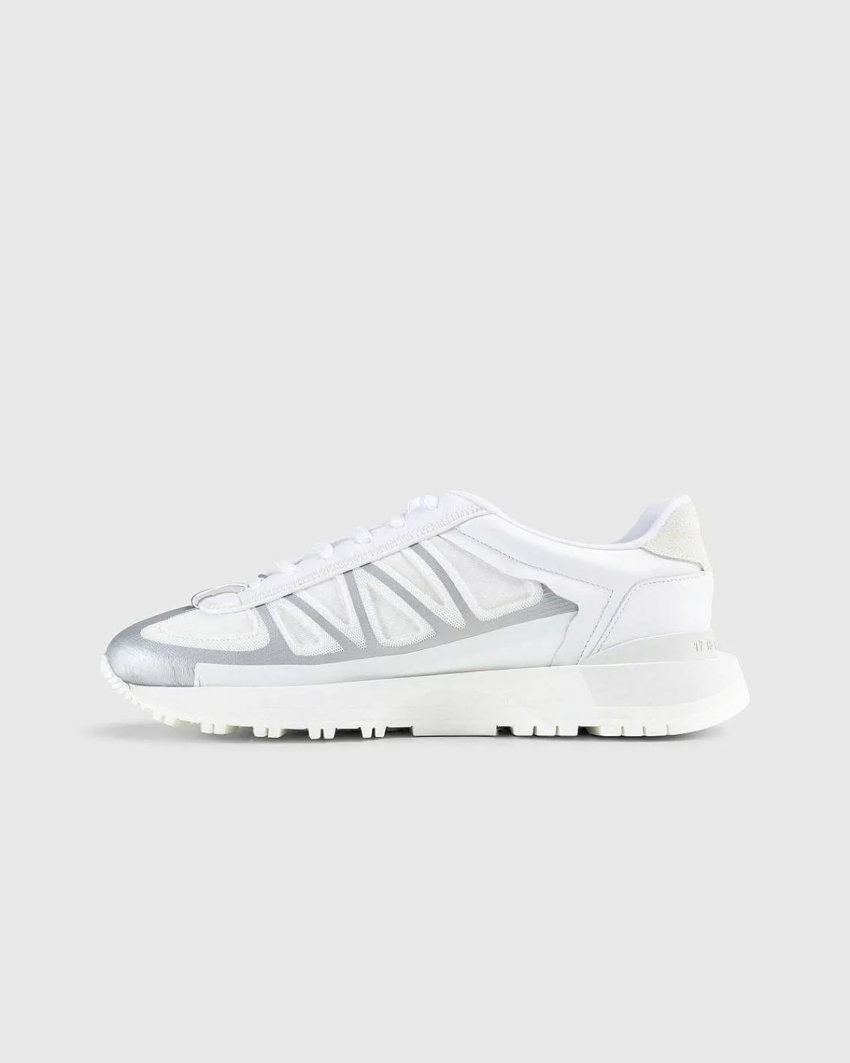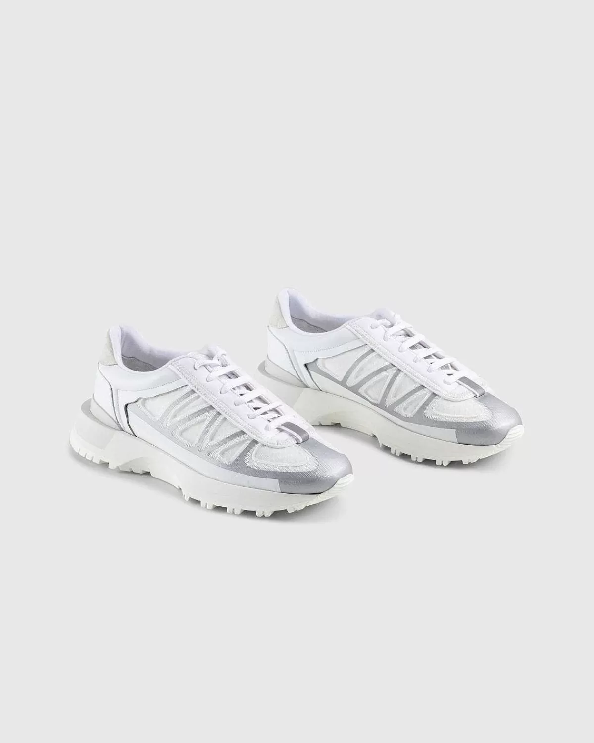 50/50 Er En Sporty Margiela-Fodtøjssilhuet Udført I Paneleret Poleret Læder Og Almindeligt Vævet Nylon. Den Ankommer I En Alsidig Hvid Farvevariant, Minimalt Mærket Med Husets Signaturmærke Og Numerisk Logo På Hælen. Yderligere Detaljer Omfatter En Mellemsål Af Skumgummi Og En Ydersål Af Slidbanegummi.