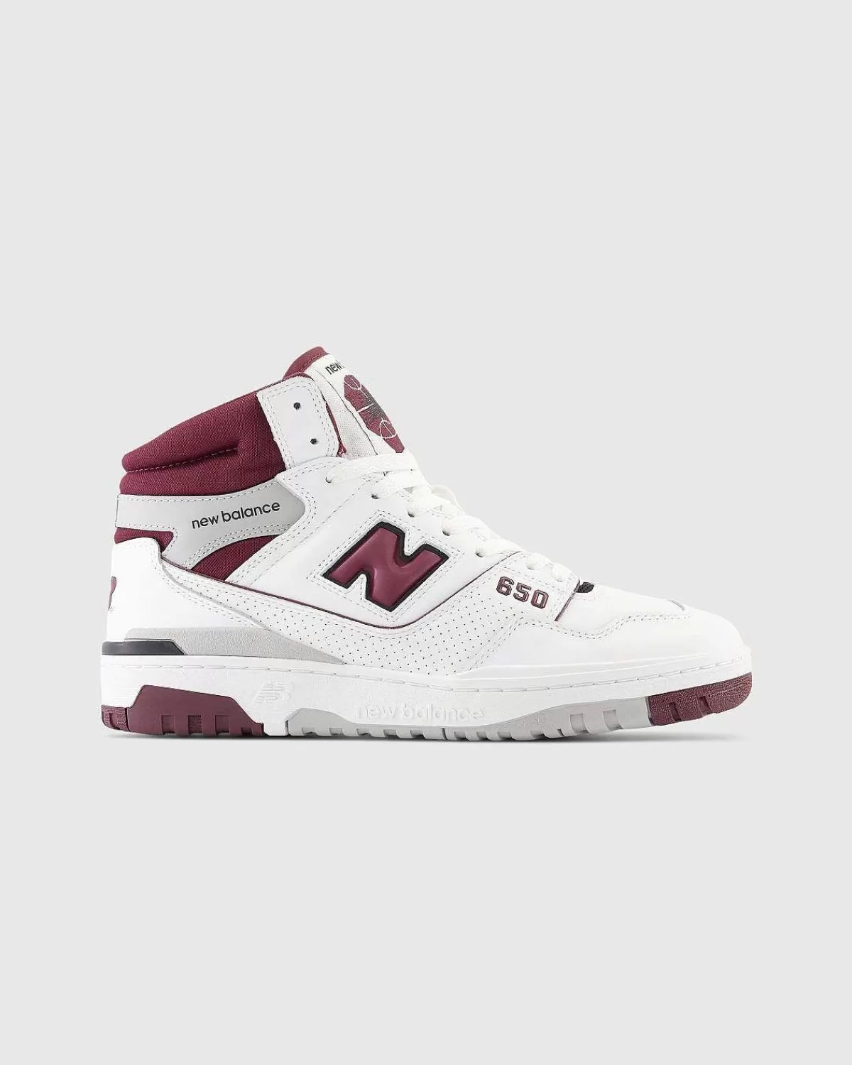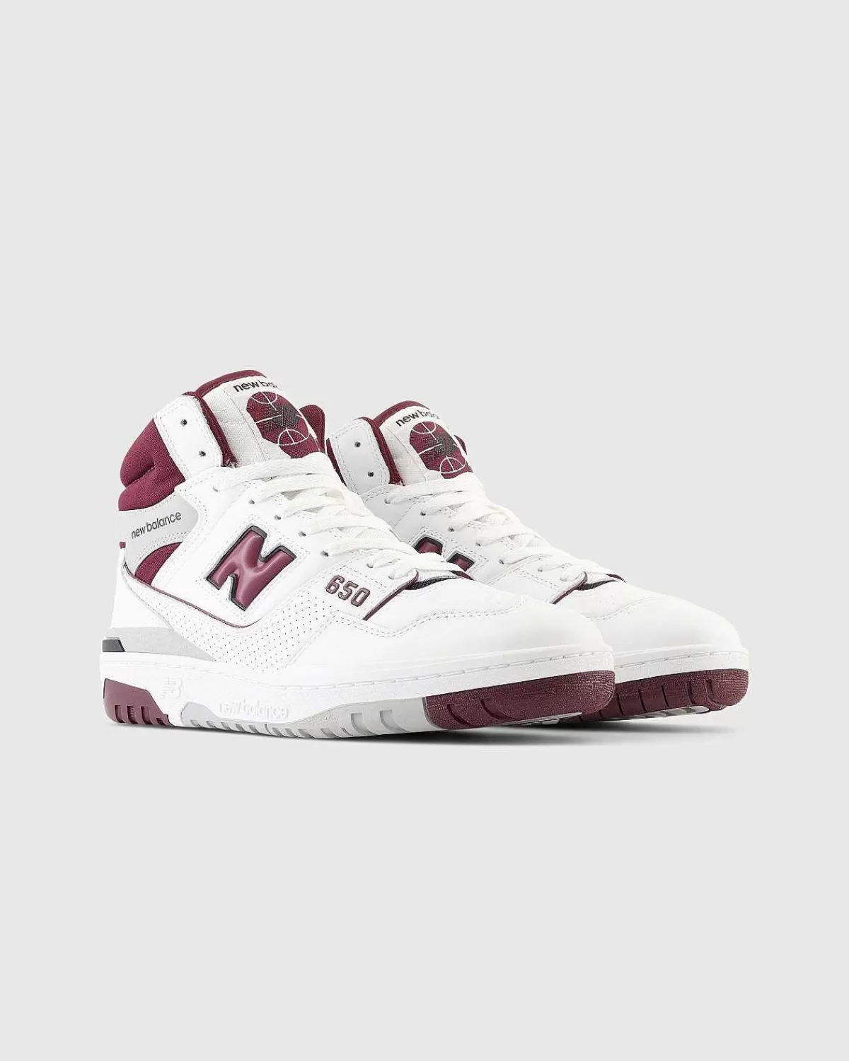 En High-Top Pendant Til New Balances Vildt Populære 550, 650’Eren Kombinerer 1980’Erne On-Court Design Med Understøttende Funktioner. Skoen Leverer Et Strømlinet, Ready-To-Wear Look, Med En Klassisk Læderoverdel Med Et Perforeret Læderoverlay Og En Puf- Og Stingkrave, Der Fungerer Som En Subtil Nyfortolkning Af Støbt Skumkonstruktion. Mærkets Ikoniske N-Logo Mærker Derefter Parret På Siderne, Efterhånden Som Yderligere Nb-Ikonografi Dukker Op Overalt, Herunder Ved Mellemsål, Tunge Og Hæl.