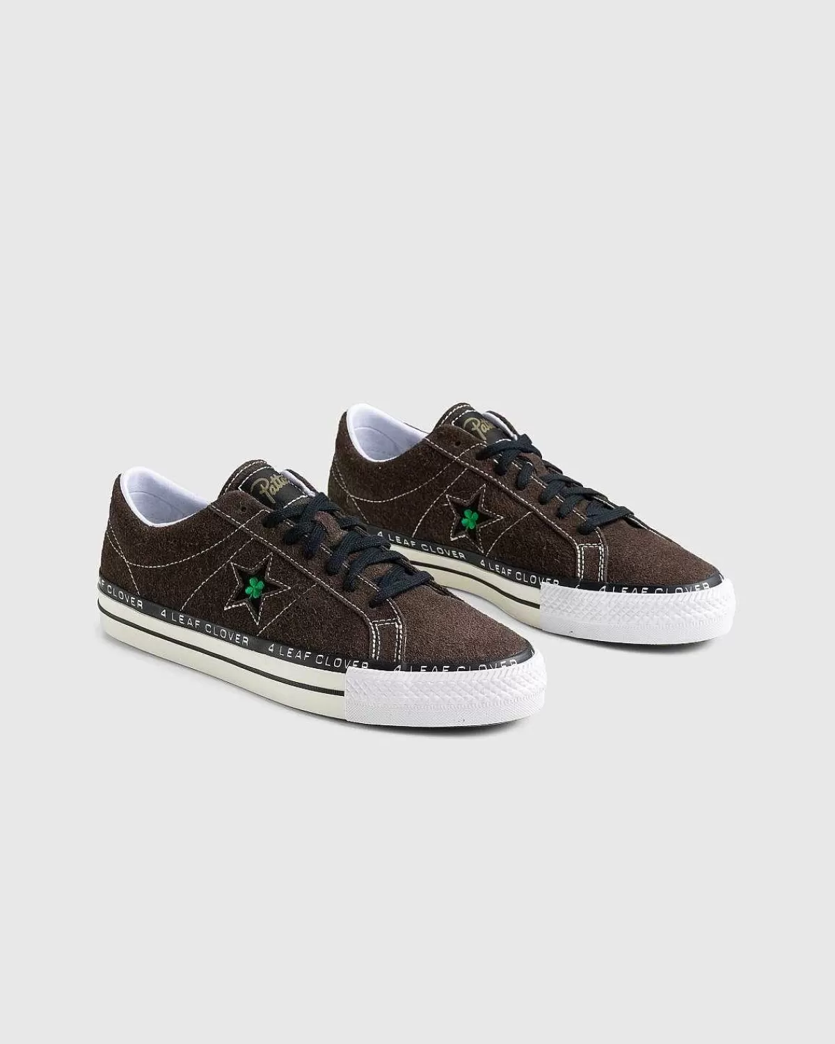 Converse Og Patta Slår Sig Sammen Igen For At Bringe Dig Lidt Held Med Deres Seneste Firkløverkollektion. Dråbens Højdepunkt Er One Star Pro, Og Ser Det Omdefineret Med En Behåret Ruskindsoverdel Og Det Ikoniske Symbol På Lykke Syet Ind I Converses Stjernelogo. 4 Leaf Clover-Tekst Er Trykt Og Ombrydes Omkring Mellemsålen På Skoen, Mens Patta Branding Sidder På Tungen. Ydersålen Er Lidt Ældet Til Et Klassisk Look, Og Både Sockliner Og Nummerplade Ved Hælen Deler Co-Brandede Logoer Fra Denne Duo.