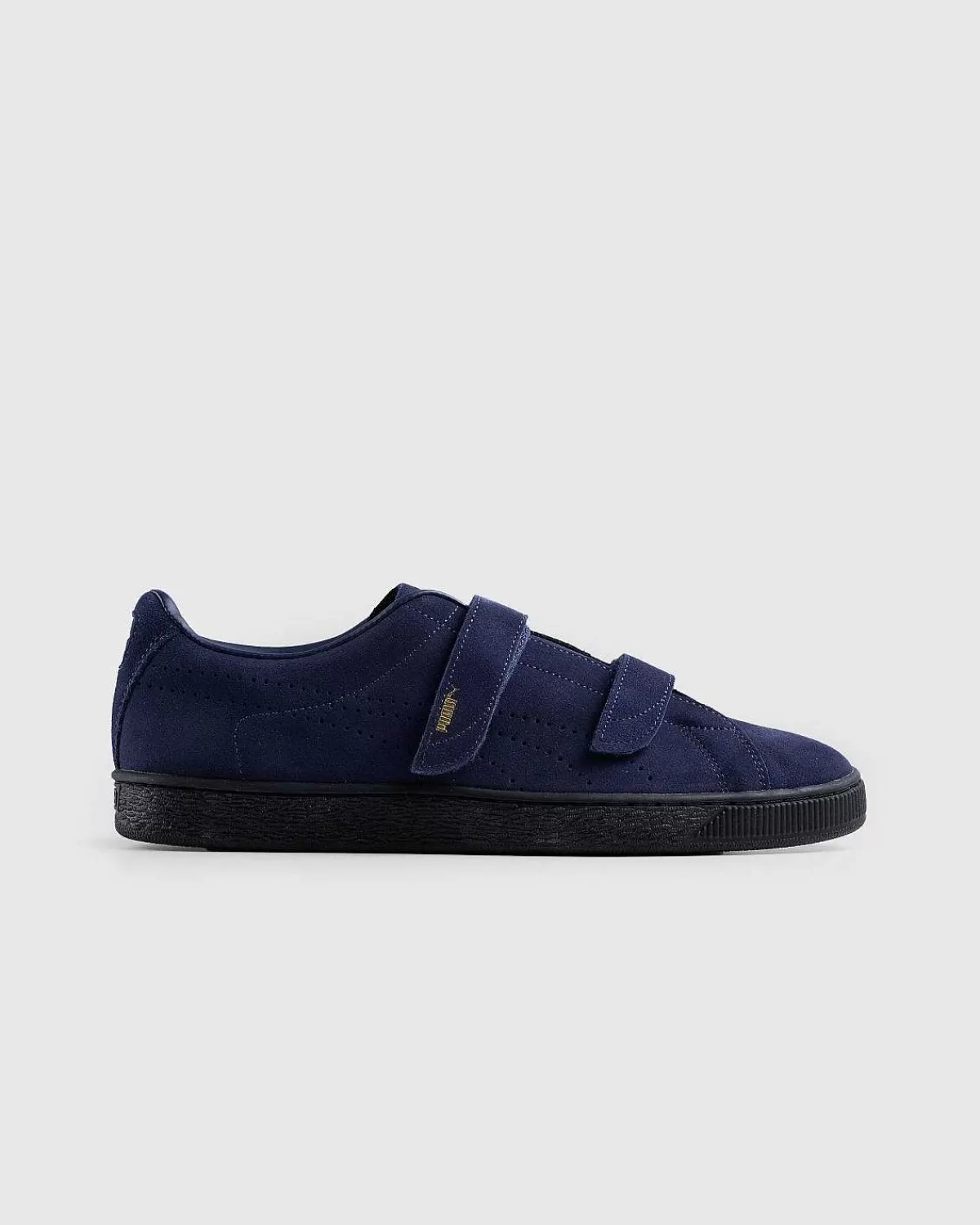 Første Gang Udgivet I 1968, Er Puma Ruskind Vokset Til At Være En Af De Mest Alsidige Silhuetter Fra Dens Æra Og Videre. Denne Særlige Version Kommer Som En Del Af Mærkets Igangværende Partnerskab Med Noah Og Har En Glat, Marineblå Overdel Med Et Guldfolielogo På Velcrostropperne. En Perforeret Version Af Pumas Formstrip-Logo Er Detaljeret I Kvarteret, Mens Et Præget Noah-Logo Ved Hælen Sætter Prikken Over I’Et På Denne Tidløse Stil.