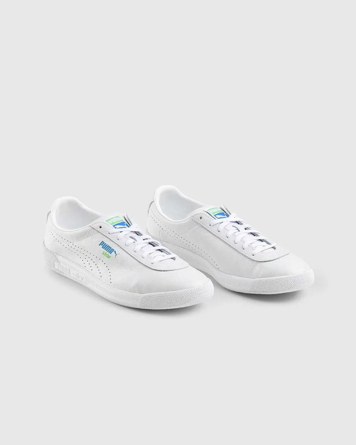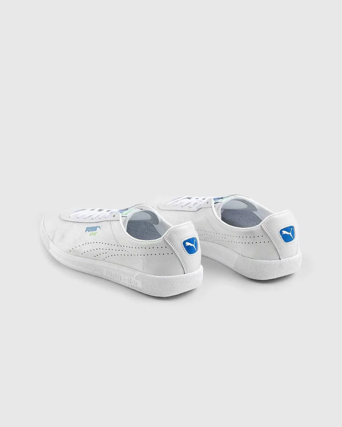 The Star Tennis Whites Dukker Op I Et Betydeligt Rent Udseende Med Farvepuster I Form Af Små Branding-Hits Implementeret I Hele Silhuetten. Den Slanke Model Har En Glat Læderoverdel, Defineret Af Perforerede Formstripdetaljer På Siderne. Yderligere Puma-Ikonografi Vises Ved Siden Af Såvel Som På Toppen Af Tungen Og Ved Hælen For Yderligere At Pynte Designet.
