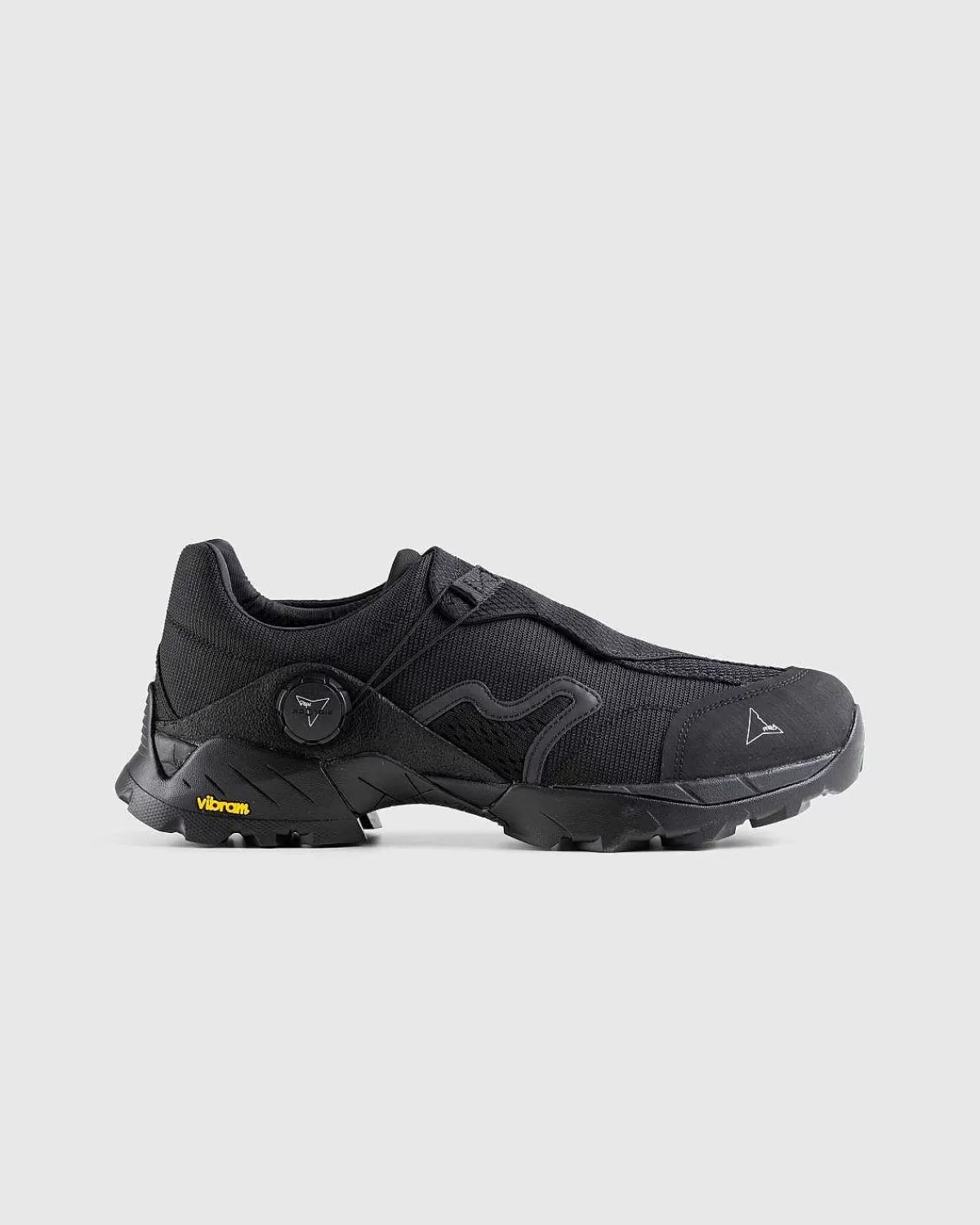 Roa Footwear Er Lige Så Hjemme På Bygader Og Alpine Stier, Med Stilarter Som Minaar, Der Slører Linjerne Mellem Stil Og Funktionalitet. Med En Overdel, Der Overvejende Er Lavet Af Polyester Og En Ydersål I Vibram-Gummi, Der Forbedrer Grebet På Ru Overflader, Er Silhuetten Kendetegnet Ved En Polstret Tunge Med En Elastisk Kile Og En Justerbar Rem. Ruskindsdetaljer Er Inkorporeret I Hele Skoen For At Give Den Et Luksuriøst Udseende, Da Stilen Er Afsluttet Med Roa-Ikonografi Ved Hæl Og Tå.