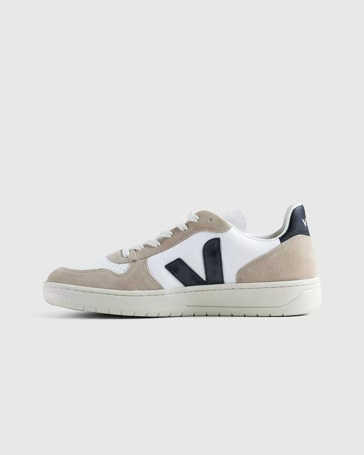 Sneakers>VEJA V-10 Kromfri Laeder Hvid/Sort/Sahara