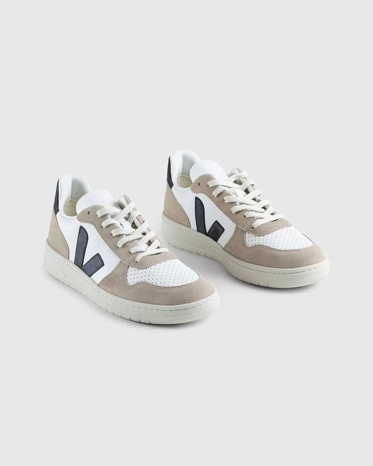 Veja Sneakers Er Kendetegnet Ved Miljøbevidst Konstruktion Af Innovative Materialer. Styles Som V-10 Viser En Ren Æstetik Og Kan Nemt Klædes Op Eller Ned For At Overholde Alle Typer Lejligheder. Dette Særlige Par Har En Kromfri Læderoverdel Med Kromfri Læder Og Ruskindspaneler. Signature V-Logoet På Siden Er Udført I Amazonisk Gummi, Som Også Bruges Til At Udgøre Indersålen Og Ydersålen. Yderligere Ikonografi Dukker Op Ved Pløsen Og Hælen, Da Skoen Leveres Komplet Med Snørebånd Af Økologisk Bomuld.