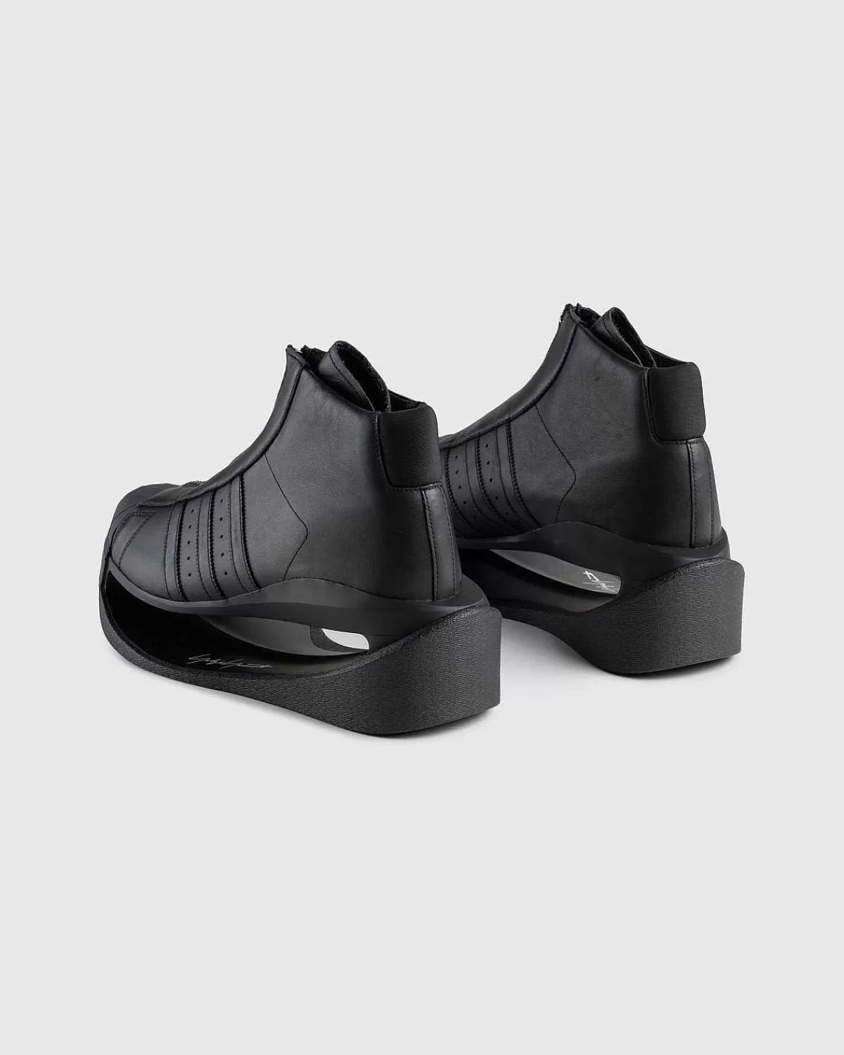 Yohji Yamamoto Forvrænger Den Ikoniske Adidas-Superstjerne For At Levere Et Nyt Avantgarde-Design Kaldet Gendo. Platformskoen Er Defineret Af En Udhulet Tpu-Plade, Der Giver Dig Mulighed For At Se Direkte Gennem Mellemsålen. Den Øverste Del Af Sneakeren Efterligner Superstjernesilhuetten, Da Den Er Klædt I Læder Og Fremviser Adidas’ Tre Stribede Varemærke. Yohji Yamamotos Signatur Er Påført Hælen For At Fuldende Looket.