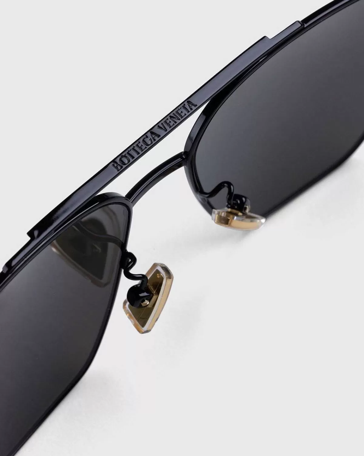 Bottega Venetas Pilotsolbriller Fungerer Som En Moderne Opdatering Til En Ikonisk Brillestil. Det Sorte Par Kombinerer Firkantede Metalrammer Med Fuld Kant Med Ensfarvede Linser, Justerbare Næsepuder Af Gummi Og Acetattinderne. Stilen Er Derefter Fremhævet Med Et Indgraveret Bottega-Logo Indbygget På Den Øverste Bjælke.