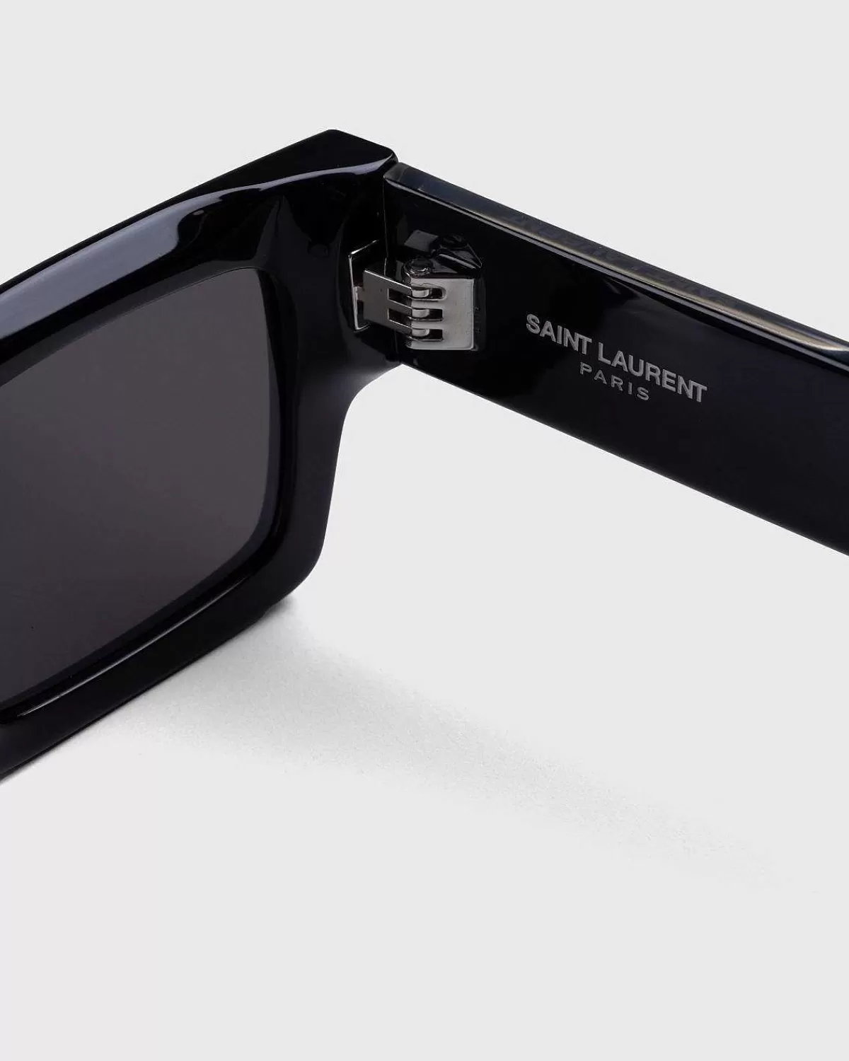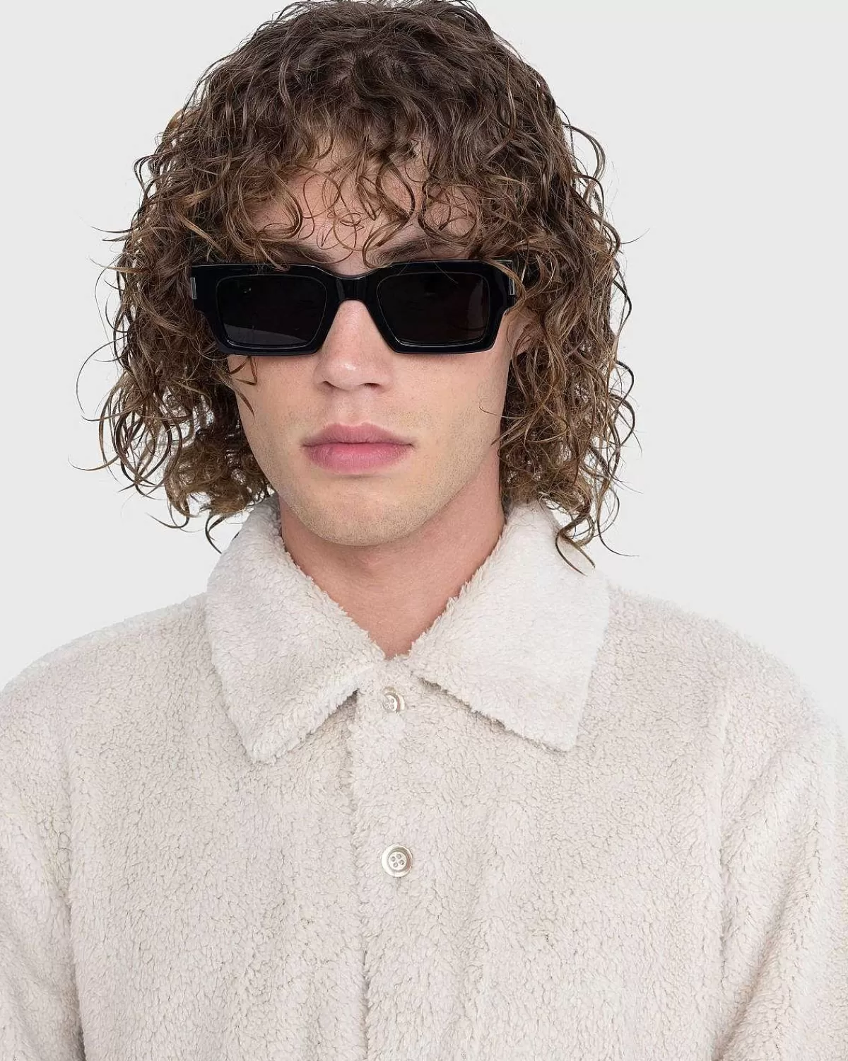 Sl 572 Er En Moderne Brillestil Af Saint Laurent. Denne Sæson Ankommer Parret I En Alsidig Sort/Krystal Farvevariant, Udsmykket Med Logogravering På Hver Arm. De Geometriske Firkantede Rammer Er Lavet Af Acetat, Parret Med Tonede Nylonlinser.