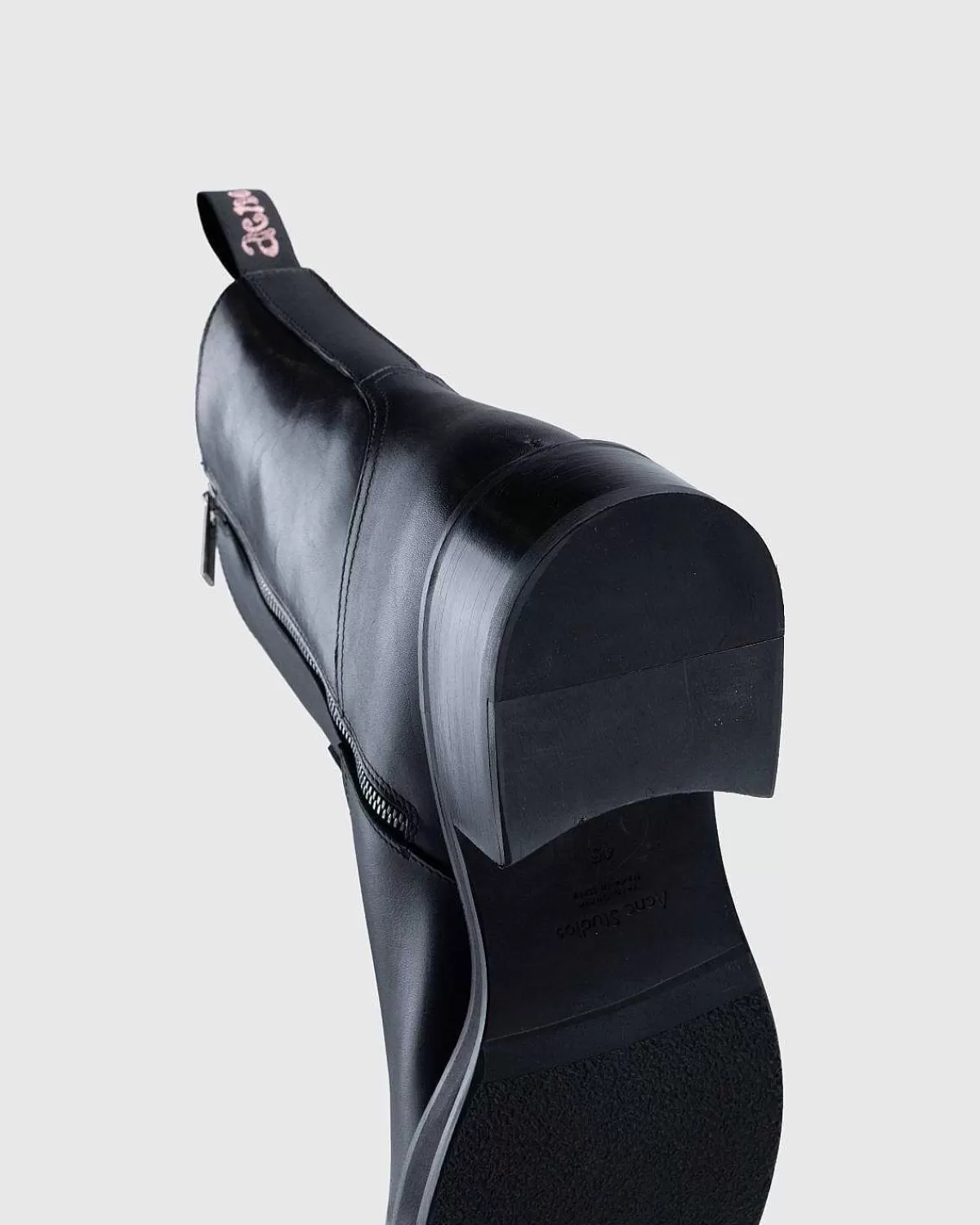 Denne Acne Studios-Støvlestil Bruger Glat Ko-Læder På Overdelen, Med Kalvelæderfor. Det Er Defineret Af En Sprayet Tå Med En Glødende Finish, Mens Den Har Lynlåsindgang På Den Mediale Side Af Silhuetten. Ikonografi Opstår Ved Hjælp Af Et Præget Acne Studios-Logo Ved Kraven Og Supplerende Branding Indbygget På Hæltrækløkken.