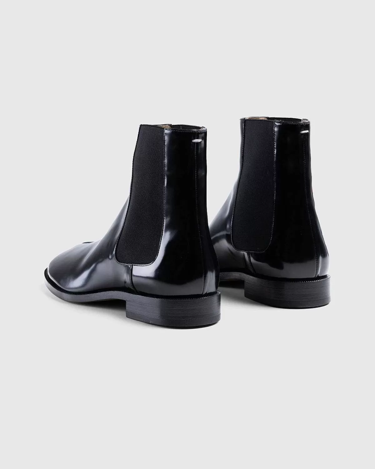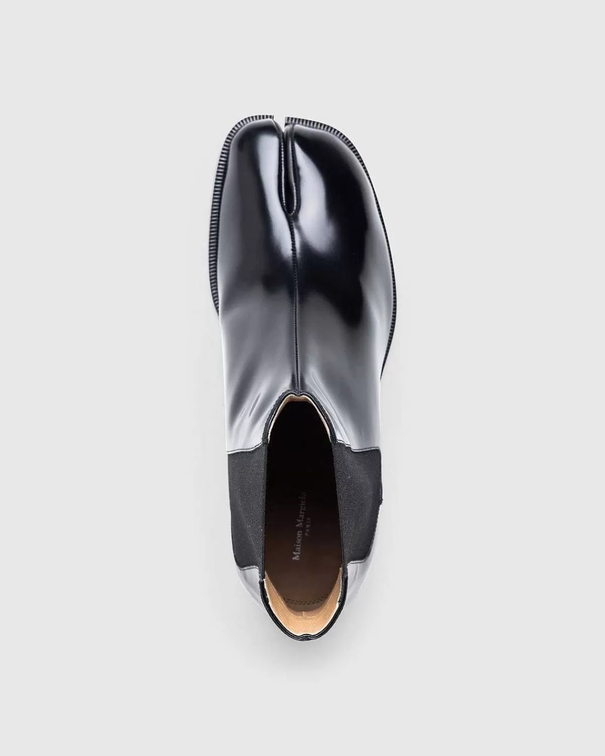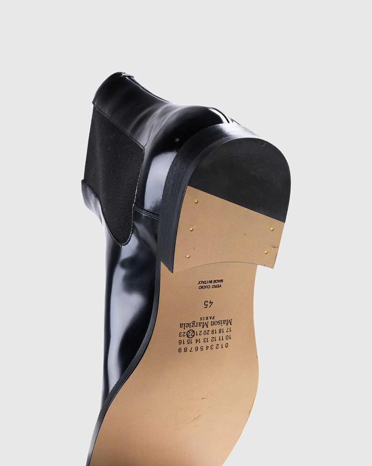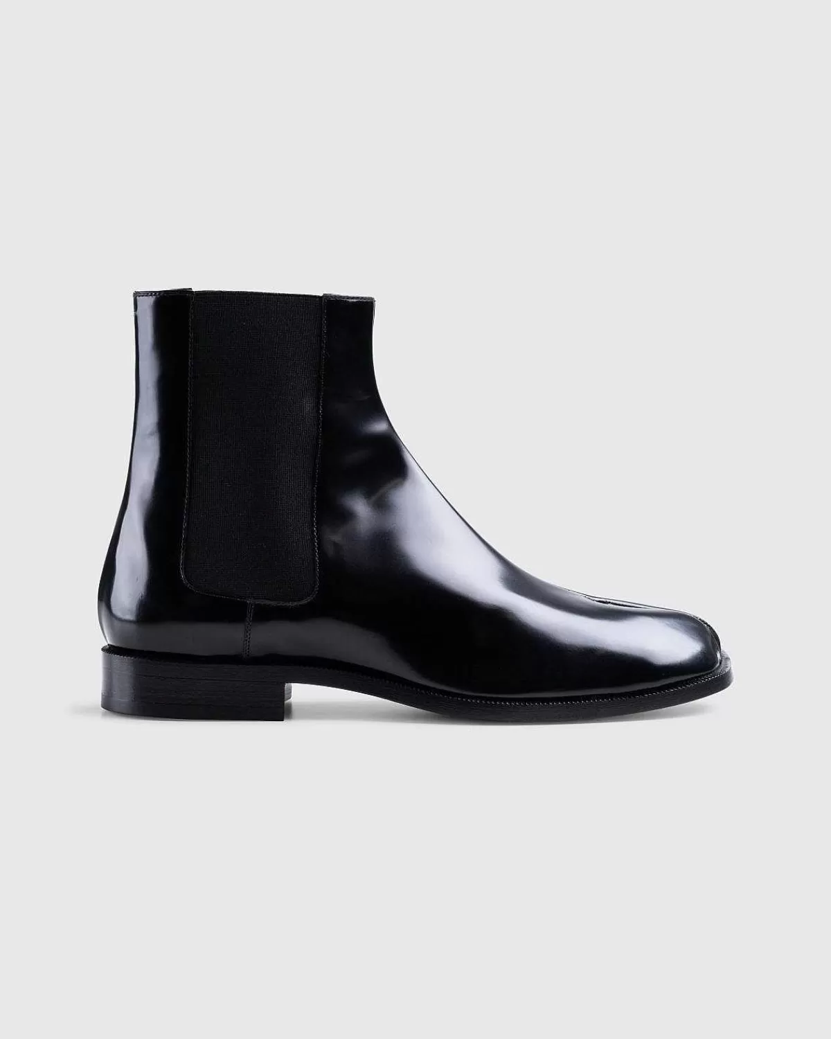 Til The Maisons Seneste Sæson Bliver Den Ikoniske Tabi-Ankelstøvle Gensynet I En Helt Sort Farve. Fremstillet Af Blødt Nappalæder Med En Kornet Tekstur, Støvlen Er Afsluttet Med En Cylindrisk Hæl, En Skjult Kroglukning Og Mærkets Hvide Signatursyninger På Bagsiden.