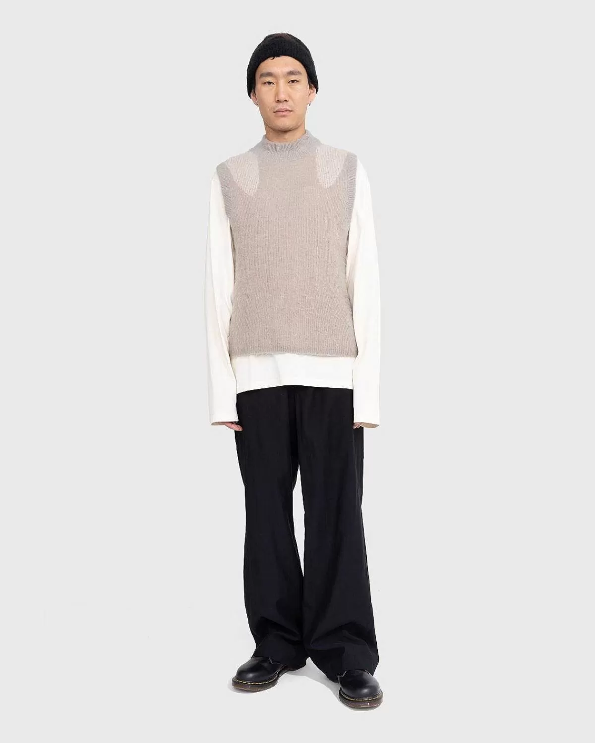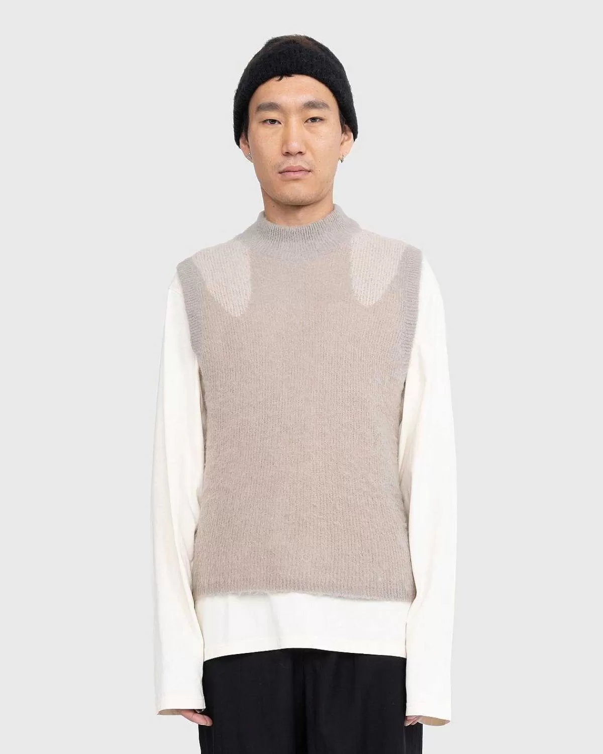 Denne Sweatervest Fra Jl-Al Er Defineret Af Et Karakteristisk “Flydende” Design. Den Er Strikket Af En Fuzzy, Let Alpaca Og Syntetisk Garn, Mens Den Har Ribkanter Ved Den Høje Halskrave Og Armåbninger.