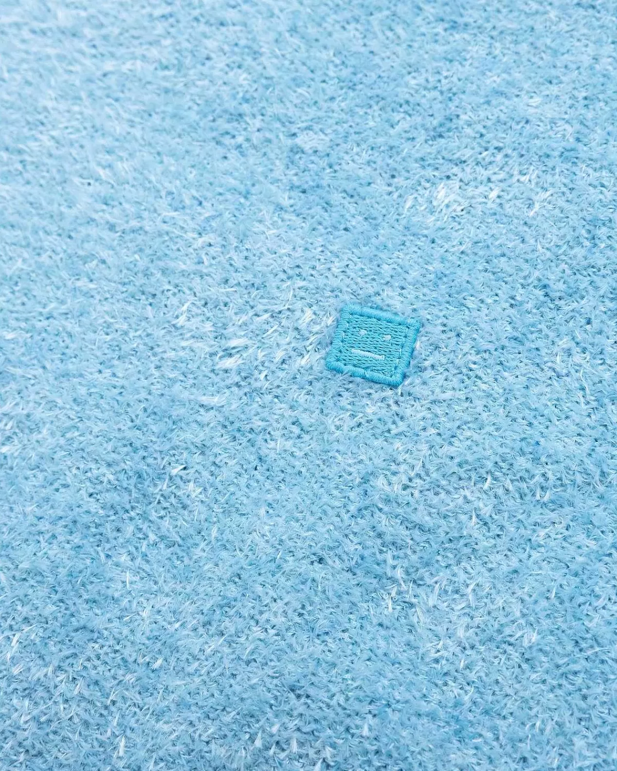 Denne Iøjnefaldende Sweater Fra Acne Studios Ankommer I En Lys Blågrøn Farvetone Og Er Lavet Af Et Trykt Tofarvet Garn Med En Tekstureret Finish Og En Blød Håndfornemmelse. Den Er Skåret Til En Almindelig, Unisex Pasform Og Har Traditionelle Ribstrikkede Kanter Ved Rund Hals, Manchetter Og Forneden, Med Mærkets Lille Ansigtslogomærke Indbygget På Brystet.
