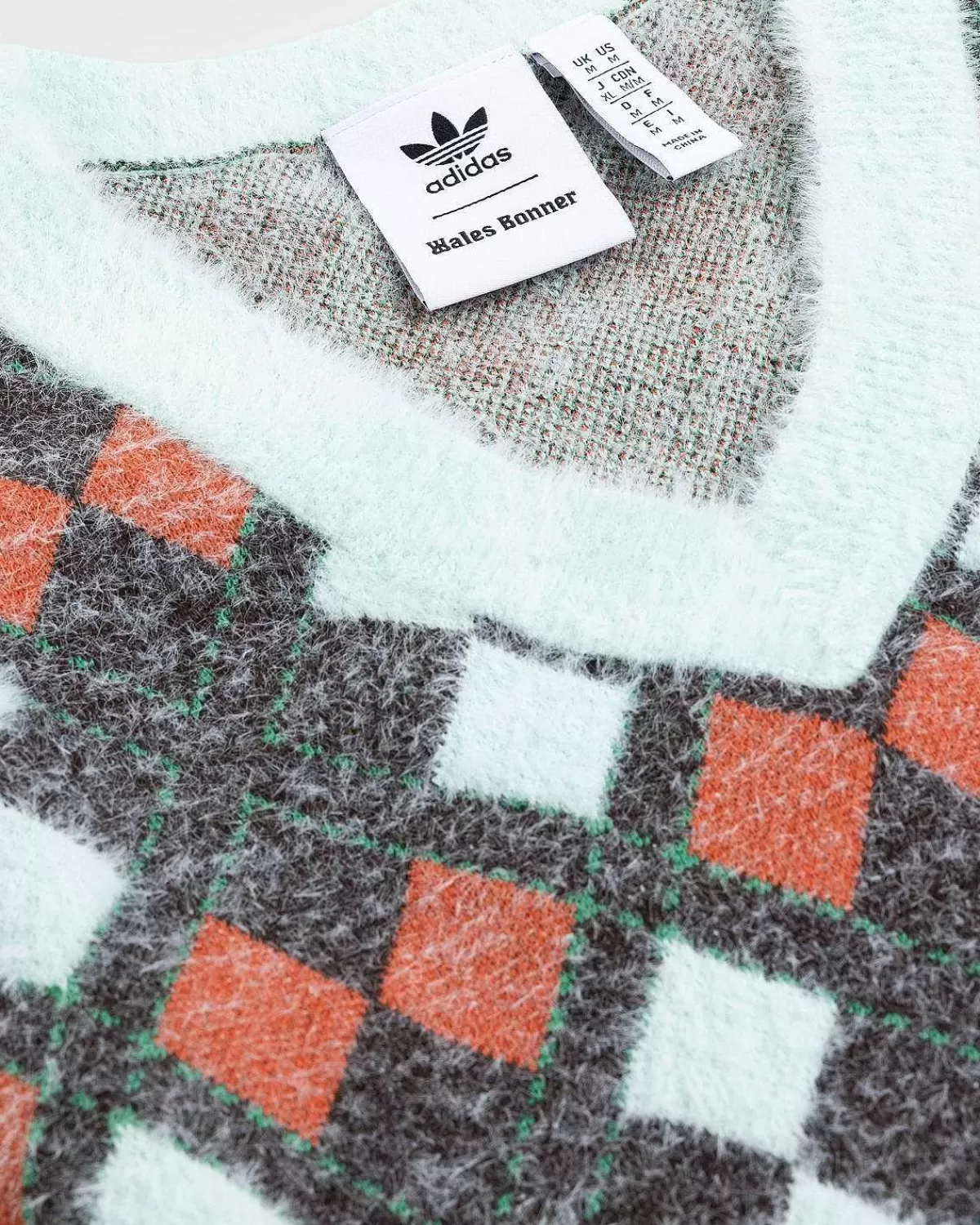 Denne Vest Fra Den Seneste Adidas X Wales Bonner-Kollektion Er Strikket Af Genbrugspolyester Og Viser Et Flerfarvet Argyle-Ternmønster. Den Har En V-Hals Og Lige Søm, Med Broderede Adidas Og Wales Bonner Branding Implementeret På Forsiden Af Den Boxede Silhuet.