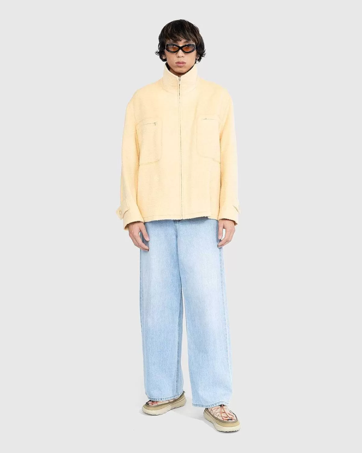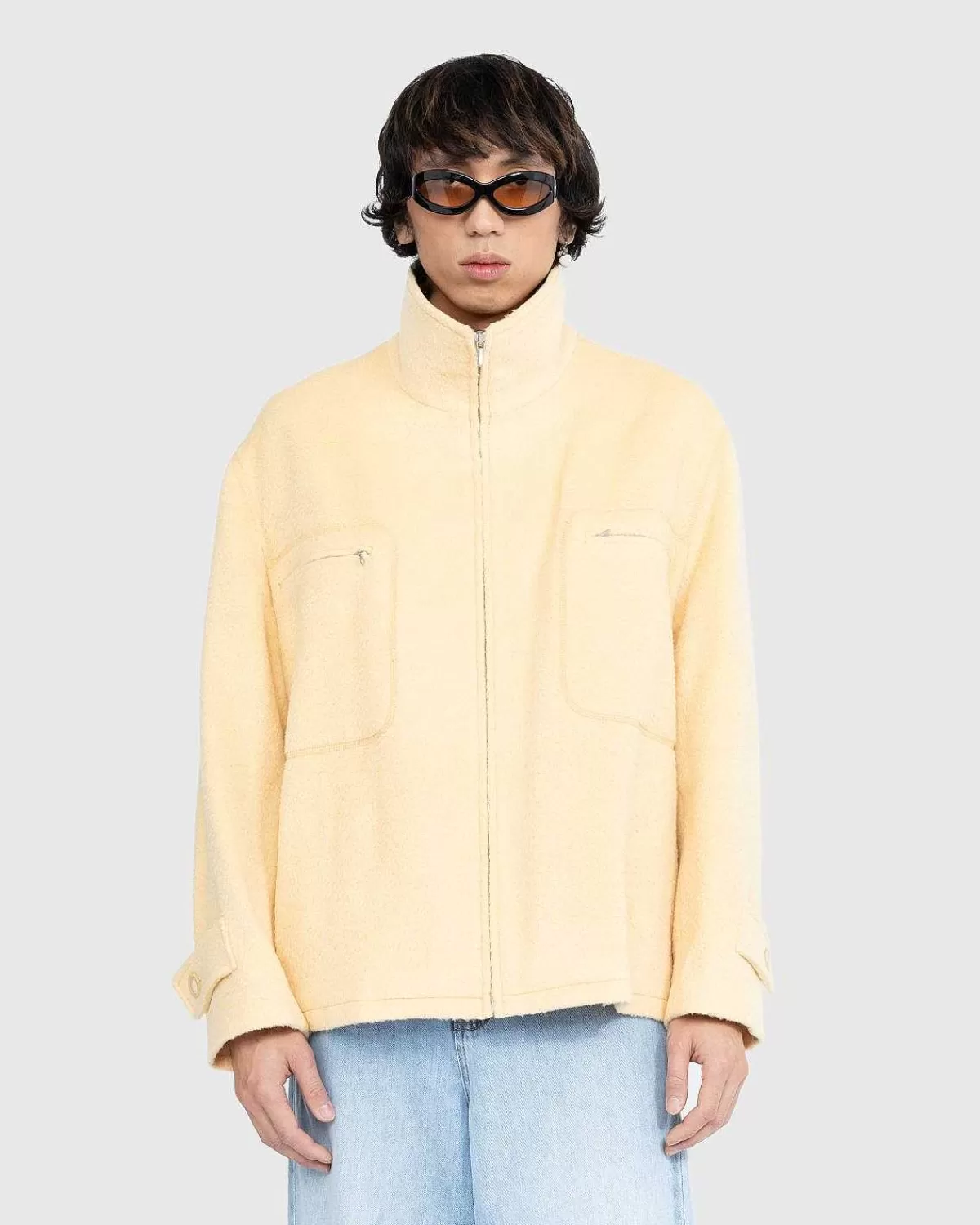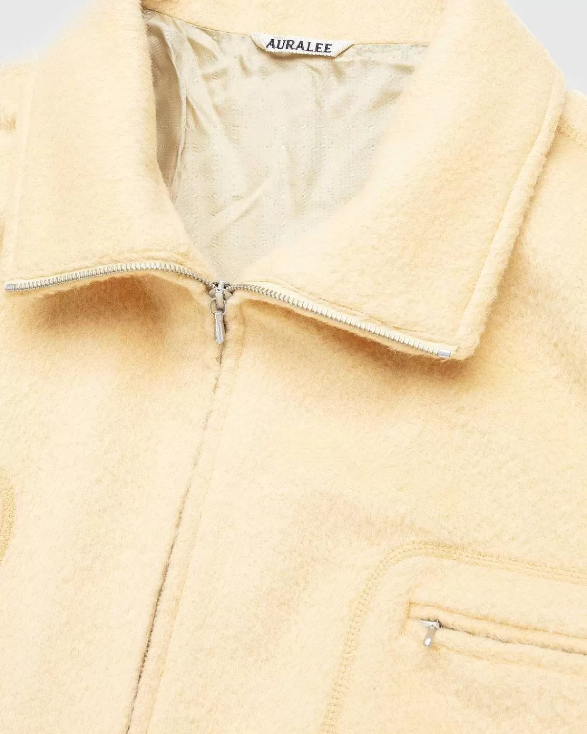 En Forhøjet Version Af Den Klassiske Fleece, Denne Auralee-Blouson Er Lavet Med En Blanding Af Uld, Suri Alpaka Og Mohair For At Skabe En Let Jacquard-Tekstur. Detaljeret Med En Tragthalskrave Og To Store Lynlåslommer På Brystet, Overtøjsstilen Er Afsluttet Med Justerbare Manchetter, Skrå Sidelommer Og En Lynlåslukning.
