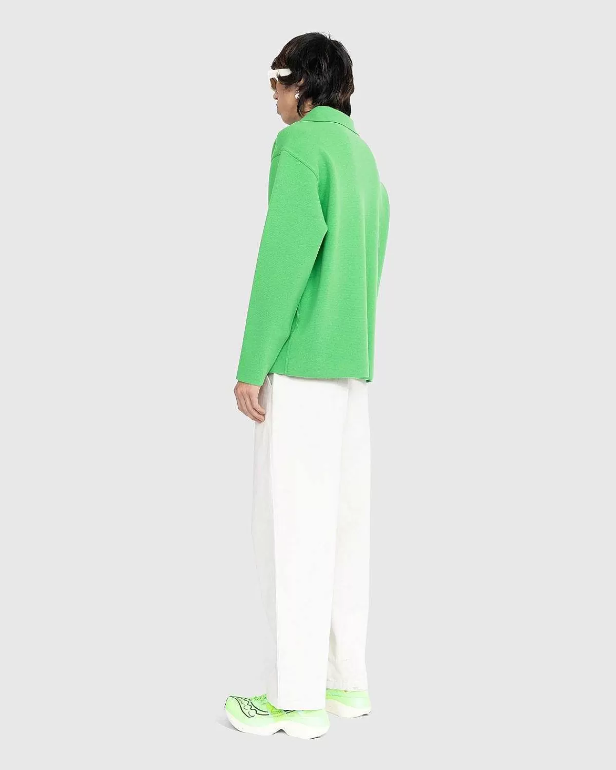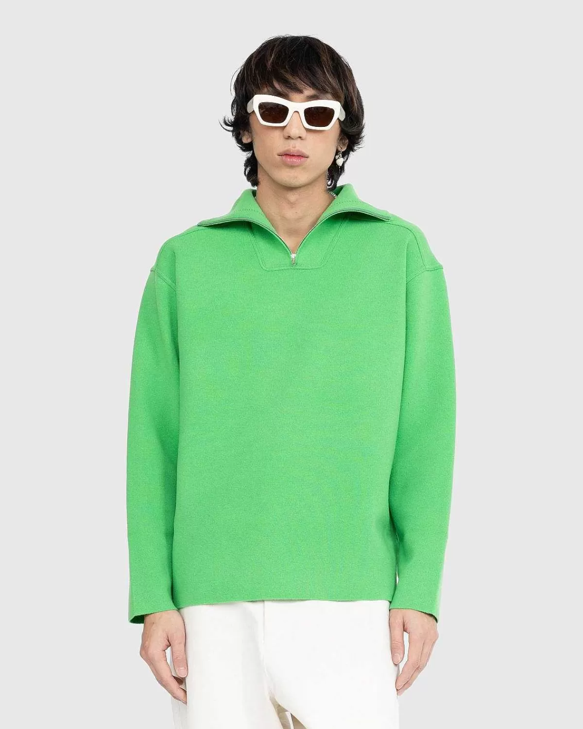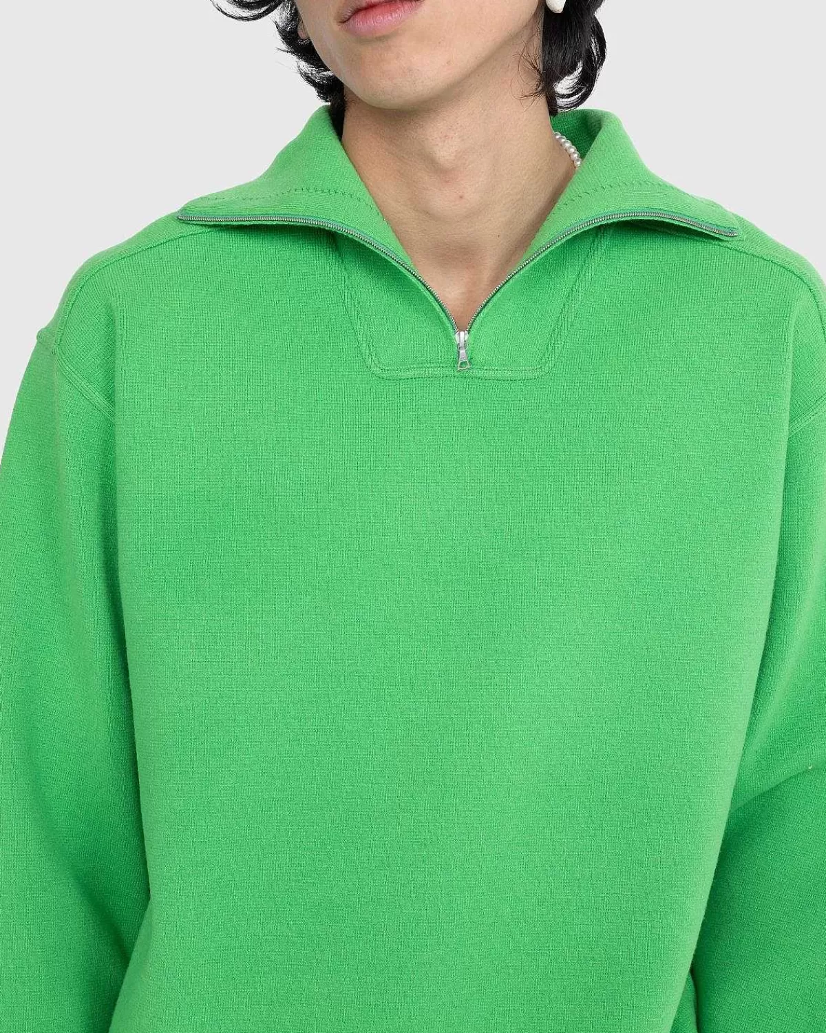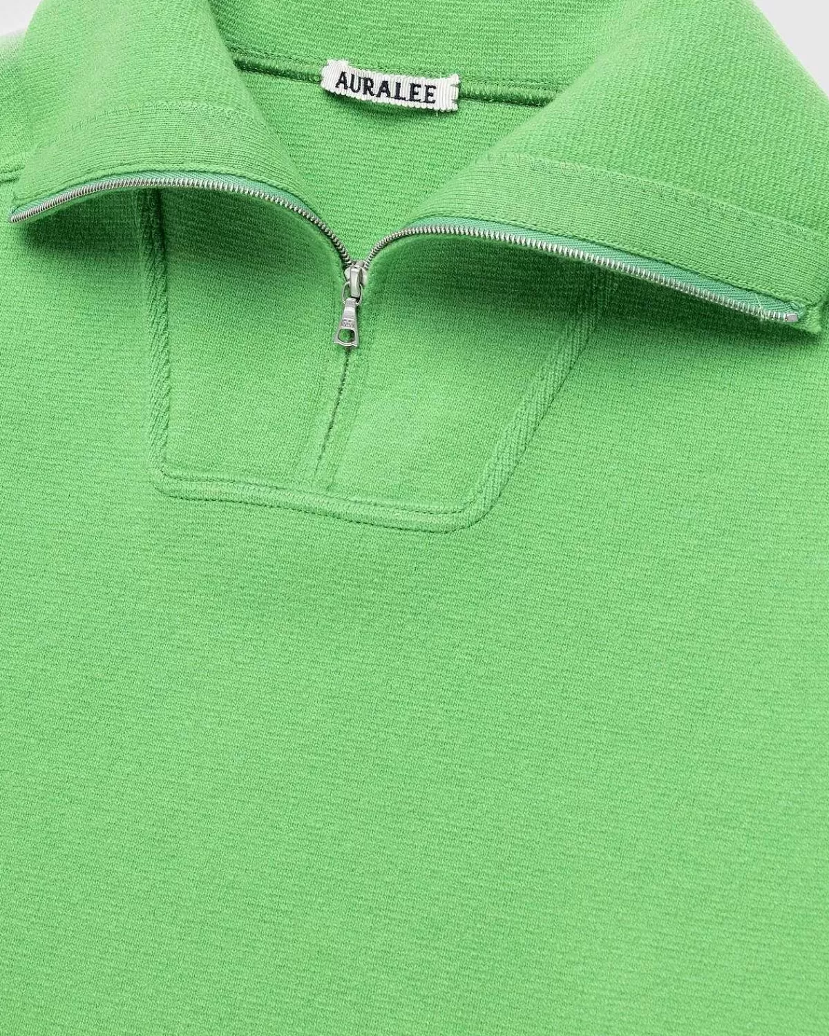 Beskrevet Af Auralee Som Havende En Ferskenfarvet Hudlignende Tekstur, Denne Trøje Med Kvart Lynlås Er Detaljeret I En Frodig Grøn Nuance. Toppen Er Skåret I En Bred, Overdimensioneret Pasform Med Synlige Sømme Og Er Lavet Af En Fin Uldblanding.