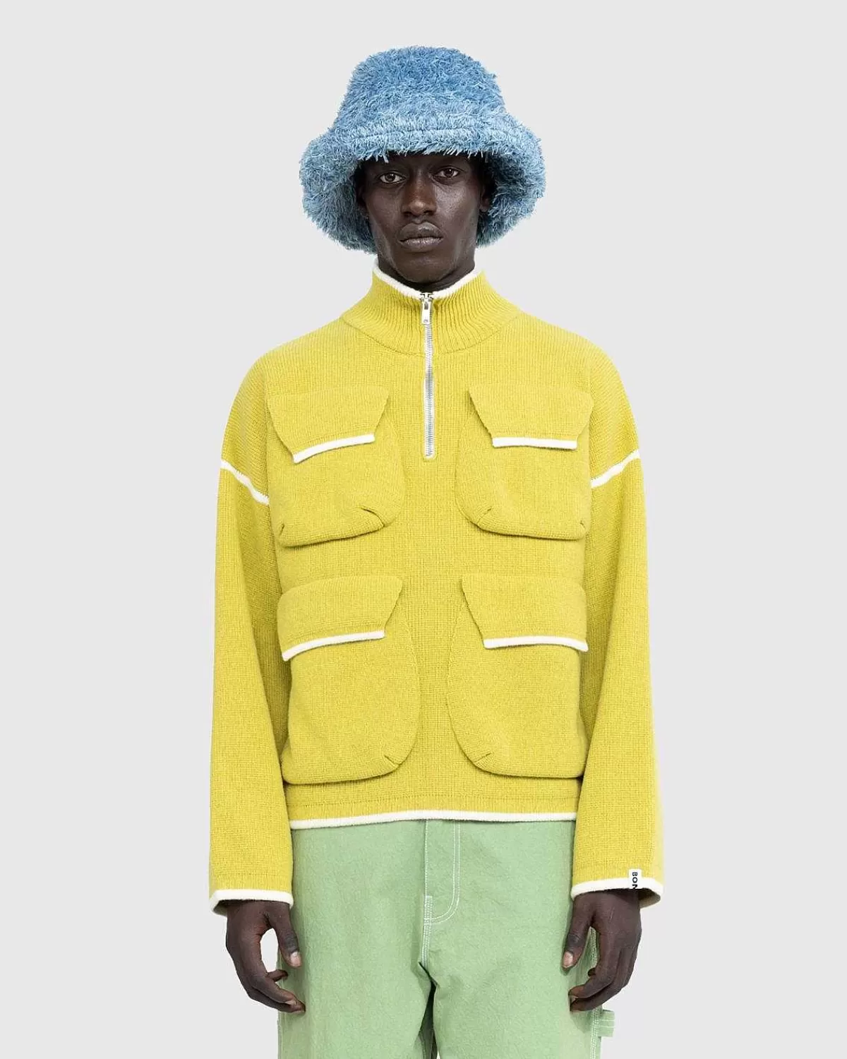 Bonsai’S Trøje Med Halv Lynlås Er Lavet Til At Lægge I Lag Under Overgangsvejr Og Er Lavet Af En Hyggelig Viskose- Og Bomuldsblanding. Sweateren Er Skåret I En Overdimensioneret Pasform, Detaljeret Med Store Laplommer I En Indbydende Gul Nuance. Kontrasterende Farver Ved Forneden, Manchetter, Klaplommer Og Standerkrave Fremhæver Toppen, Mens Den Ribstrikkede Standkrave Nemt Konverteres Med Halvlynlåsåbningen.