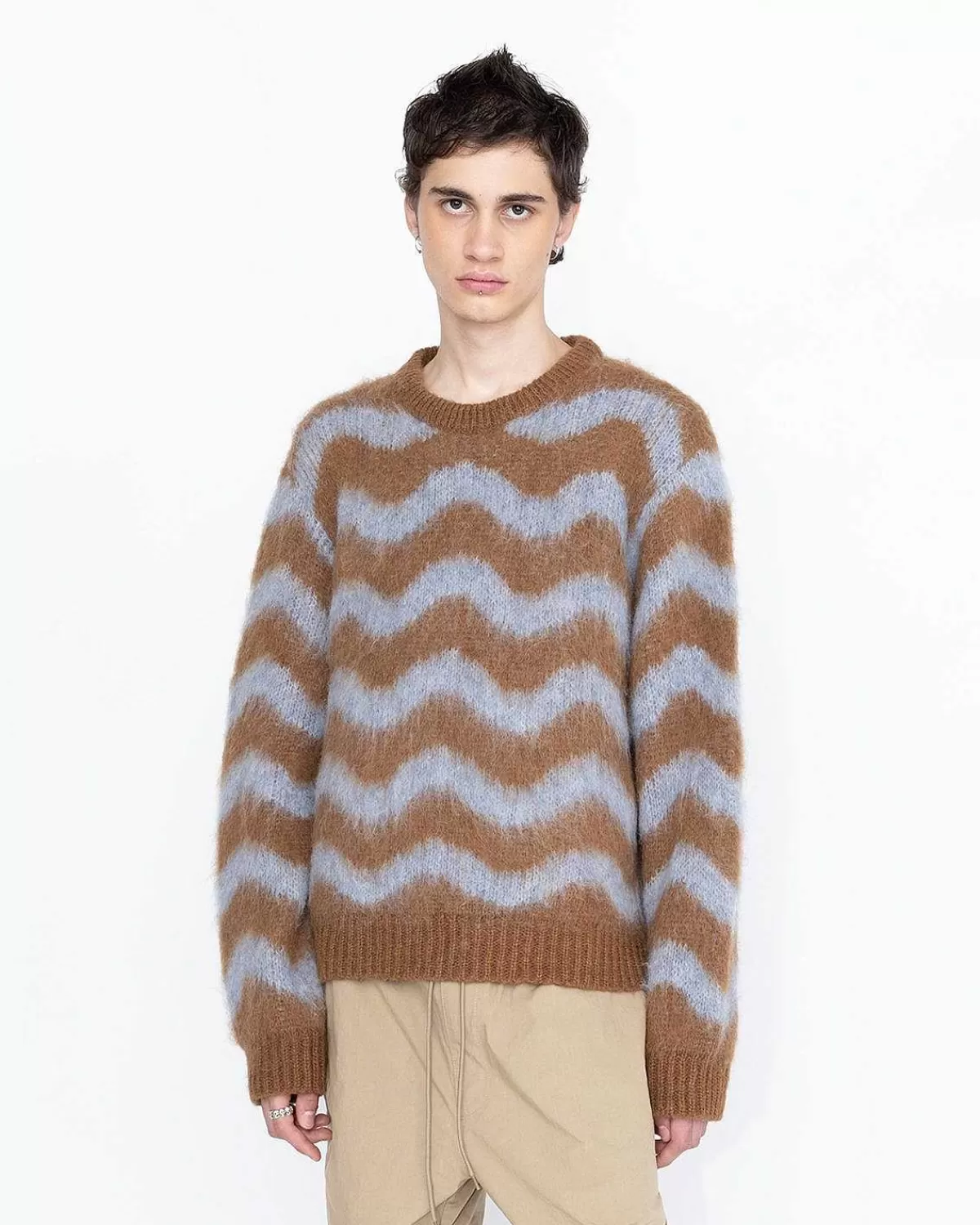 Strik>Highsnobiety HS05 Alpaca Fuzzy Wave Sweater Lysebla/Brun