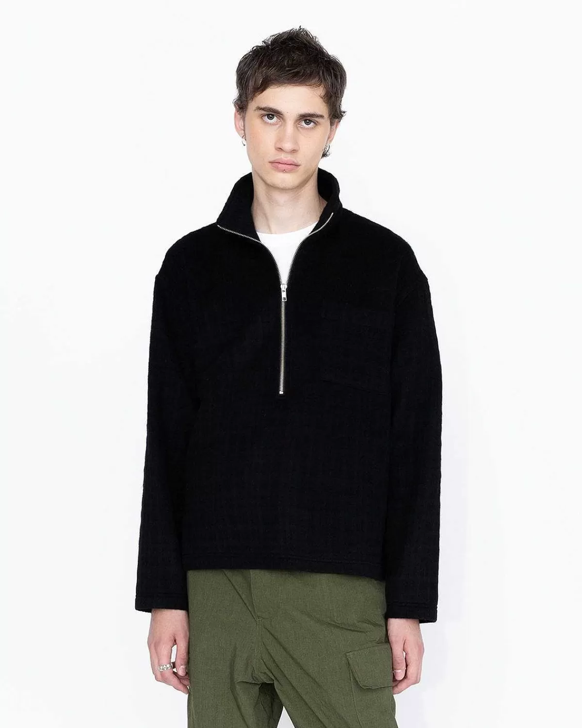 Lavet Af Genbrugsuldsblandingsstof, Uldfleece Med Halv Lynlås Er Kendetegnet Ved Sin Vaffeltekstur Og Monokrome Palet. Fleecejakken Har En Kvart Lynlåslukning På Brystet Sammen Med En Påsyet Lomme Og Ståkrave.