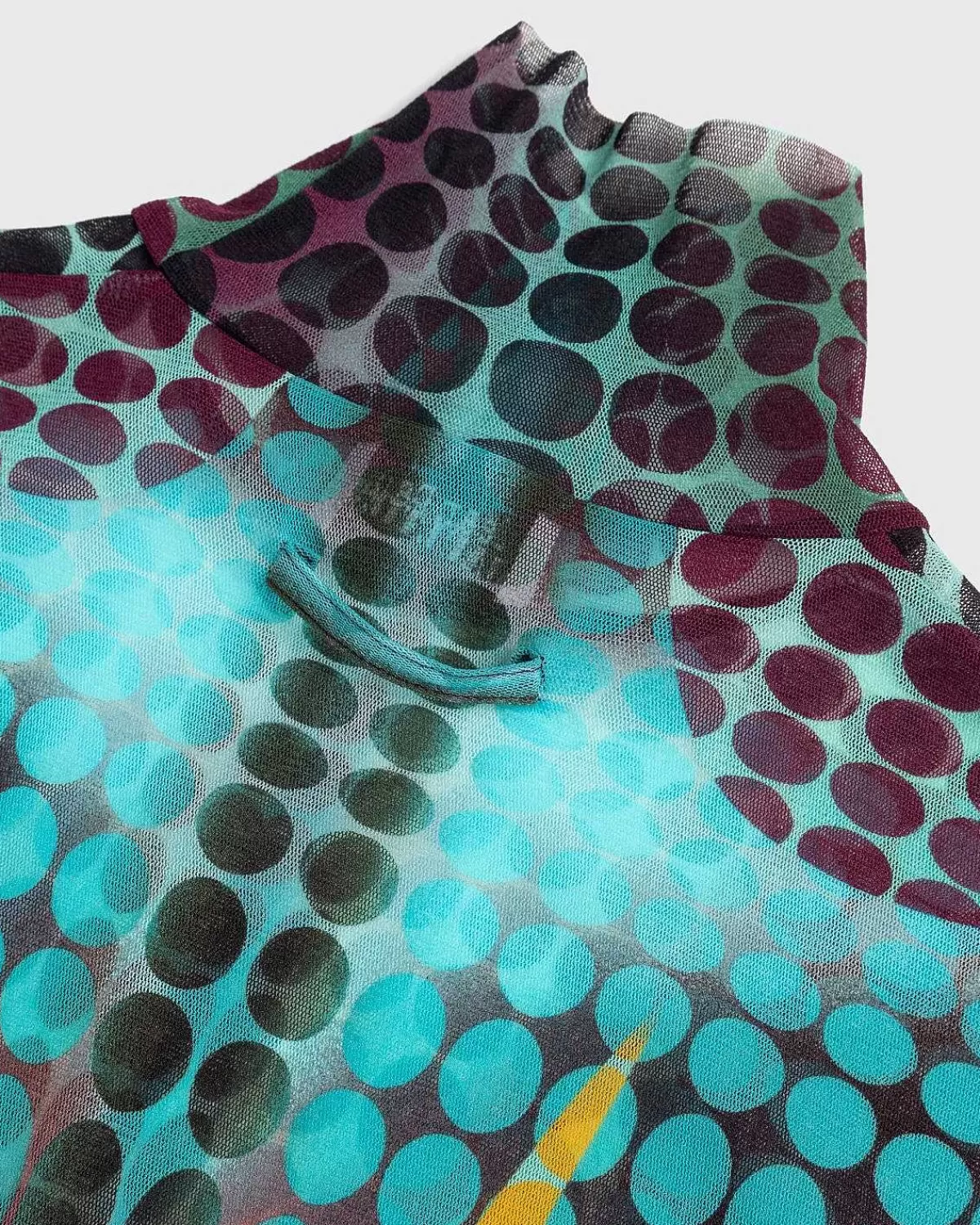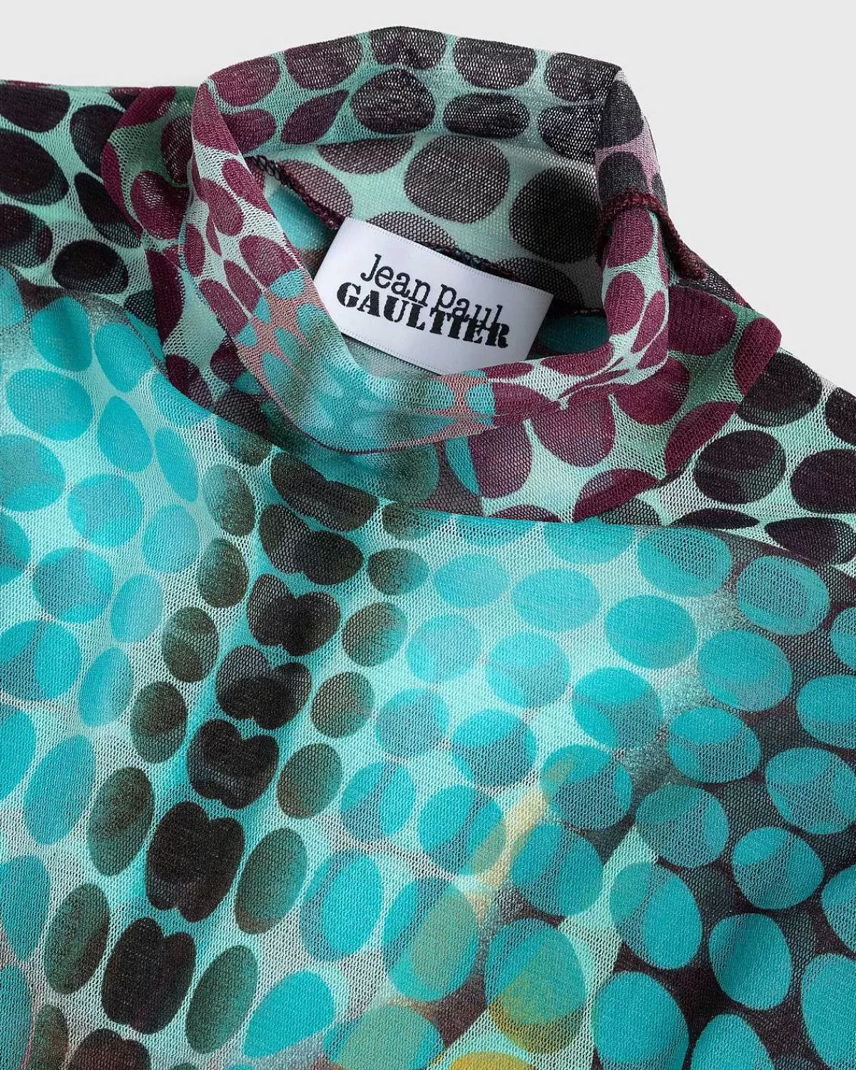 Prikprintet Er En Fast Bestanddel I Jean Paul Gaultiers Retro-Futuristiske Cyberkollektion, Som Består Af Polariserende Ready-To-Wear Stilarter, Der Peger På Husets Ikoniske 90’Er-Arkiver. Den Højhalsede Langærmede Er Et Af Mange Stykker Til At Fremvise Mønsteret, Der Kommer Sammen I Et Flerfarvet Look. En Tylstil, Toppen Er Lavet Af Let Og Elastisk Nylonstof Og Har En Rullekrave.
