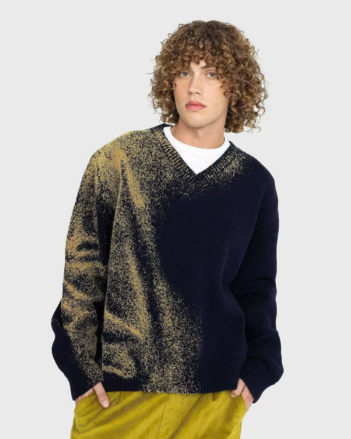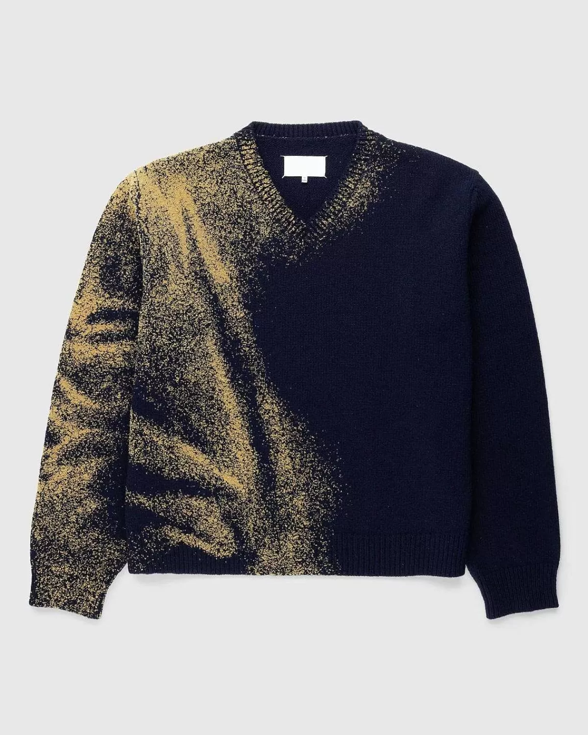 Denne Maison Margiela Sweater Med V-Hals Tiltrækker Opmærksomhed Med En Iøjnefaldende Splatter-Effekt. Lavet Af 100 %…