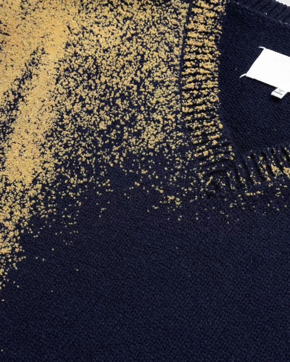 Denne Maison Margiela Sweater Med V-Hals Tiltrækker Opmærksomhed Med En Iøjnefaldende Splatter-Effekt. Lavet Af 100 % Uld, Den Løstsiddende Beklædningsgenstand Er Detaljeret Med Ribkanter Og Subtilt Mærket Med Modehusets Ikoniske Fire Sting-Moniker På Bagsiden Af Nakken.