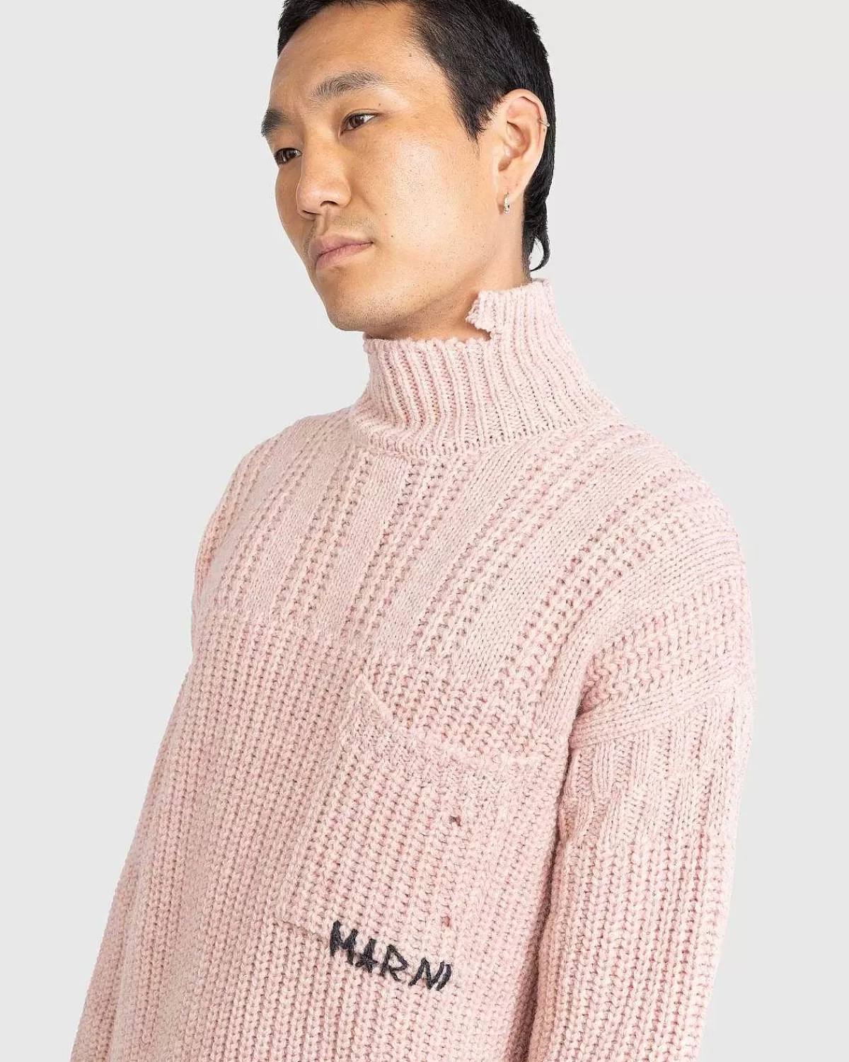Liv Din Garderobe Op Med Denne Fængslende Rullekrave Fra Marnis Seneste Kollektion. Strik Fra En Blanding Af Alpaka Og Jomfruuld, Rullekraven Er Designet Til En Overdimensioneret Pasform Med Faldede Skuldre For At Gøre Plads Til Lagdeling. Med En Frodig Lyserød Nuance Og Distressede Kanter I Hele Sweateren, Er Rullekraven Afsluttet Med En Lappelomme Og Et Håndbroderet Logo Langs Brystet.