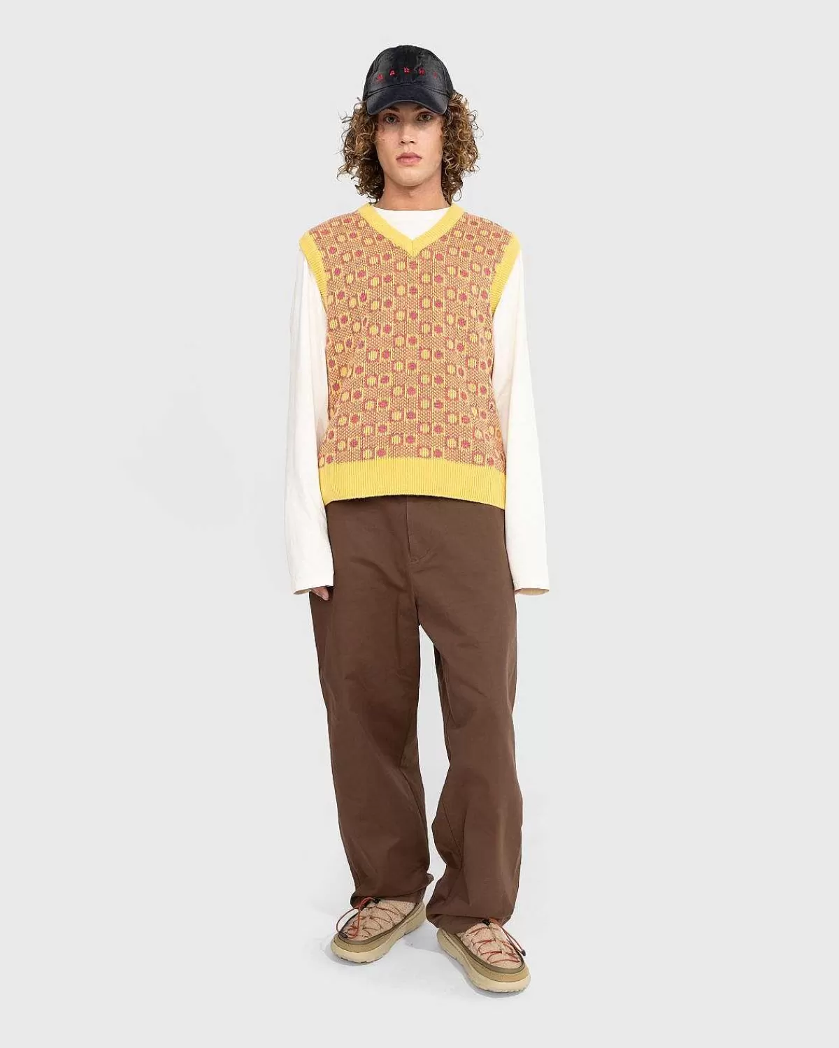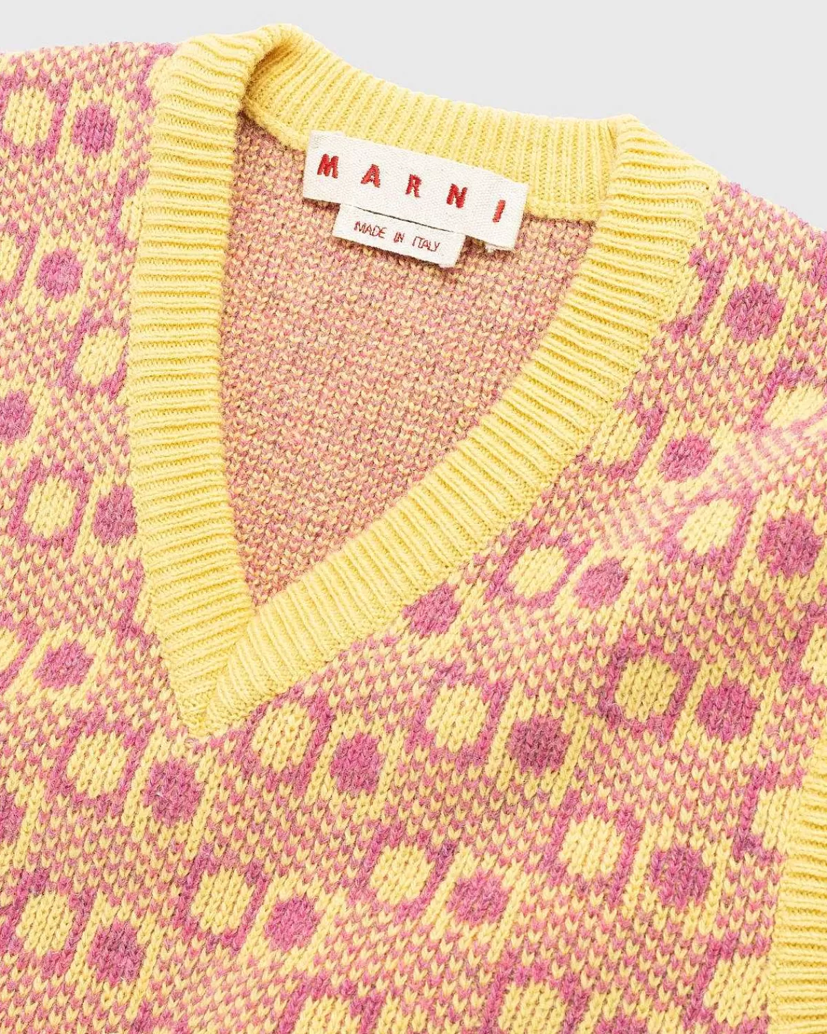 Nu Hvor Sweaterveste Er Tilbage På En Større Måde, Kommer Marni Derfor Igennem Med Et Nyt Design Fra Sin Seneste Sæsonkollektion. Denne Særlige Stil Er Produceret I 100 % Jomfruuld, Der Viser Et Karakteristisk Mønster Overalt Og Detaljeret Med Ribkanter.