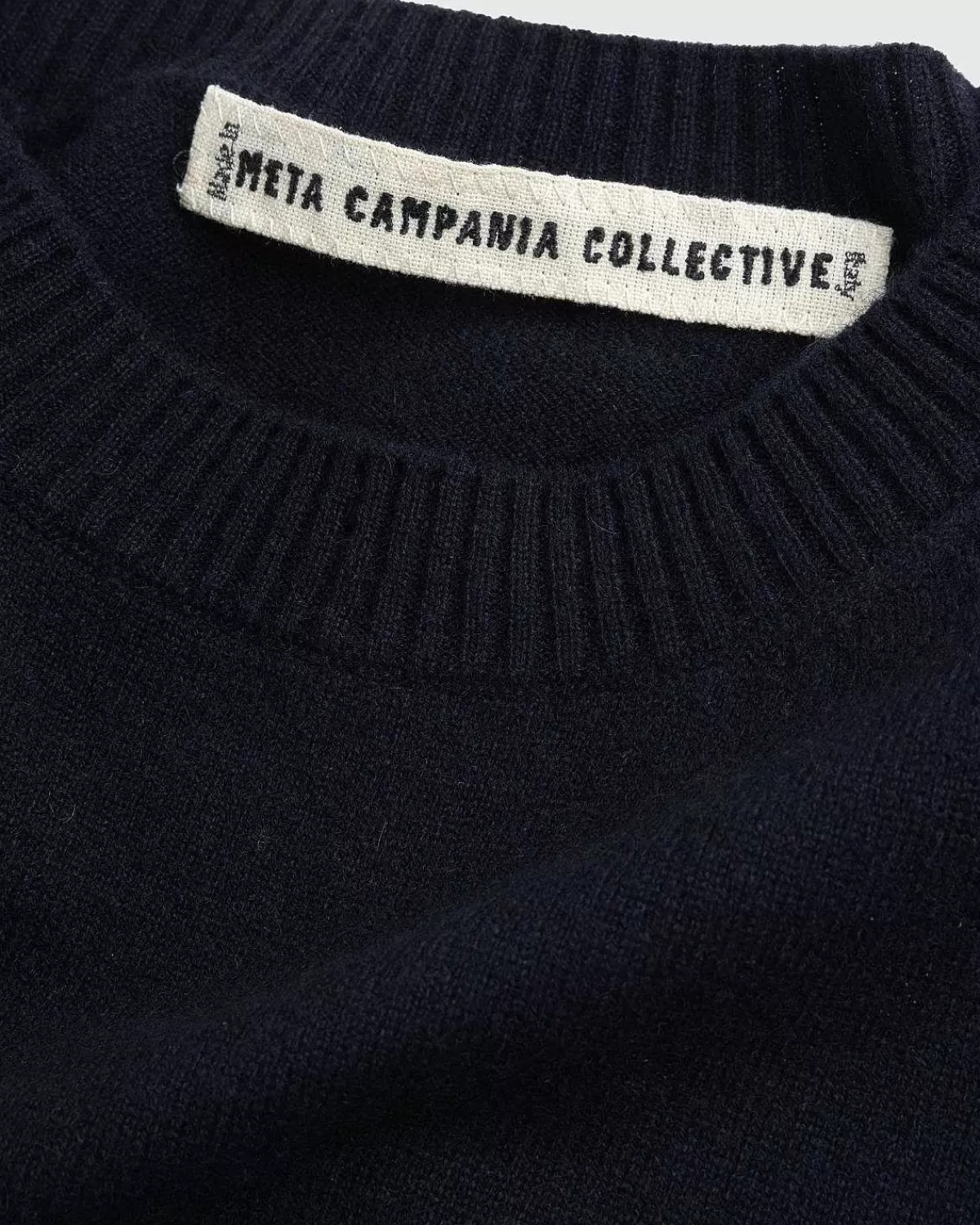 Strik>Meta Campania Collective Jack Crew Neck Cashmere Kortaermet Sweater Midnatsbla