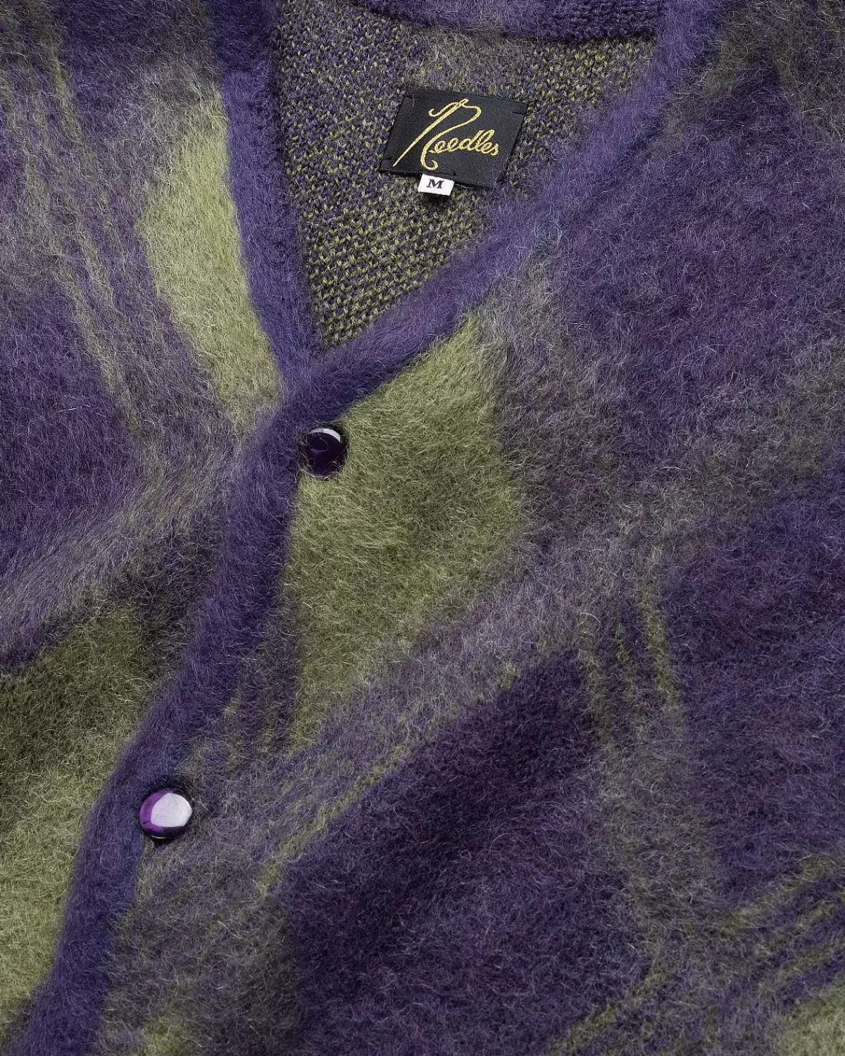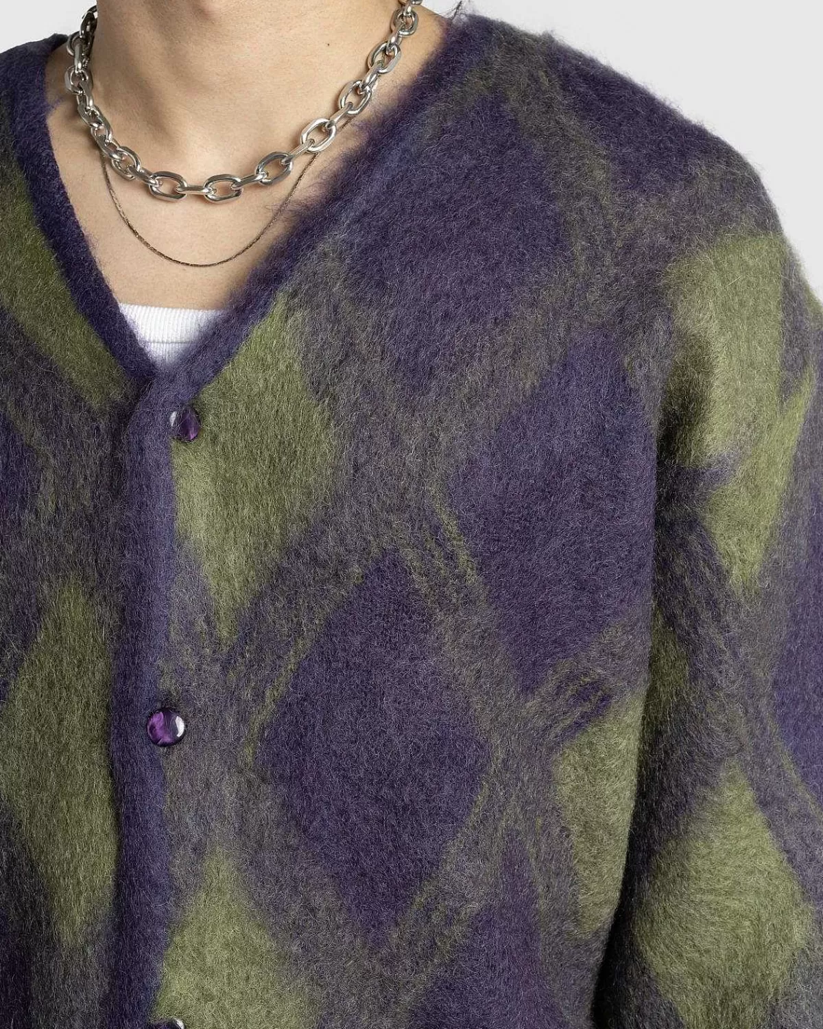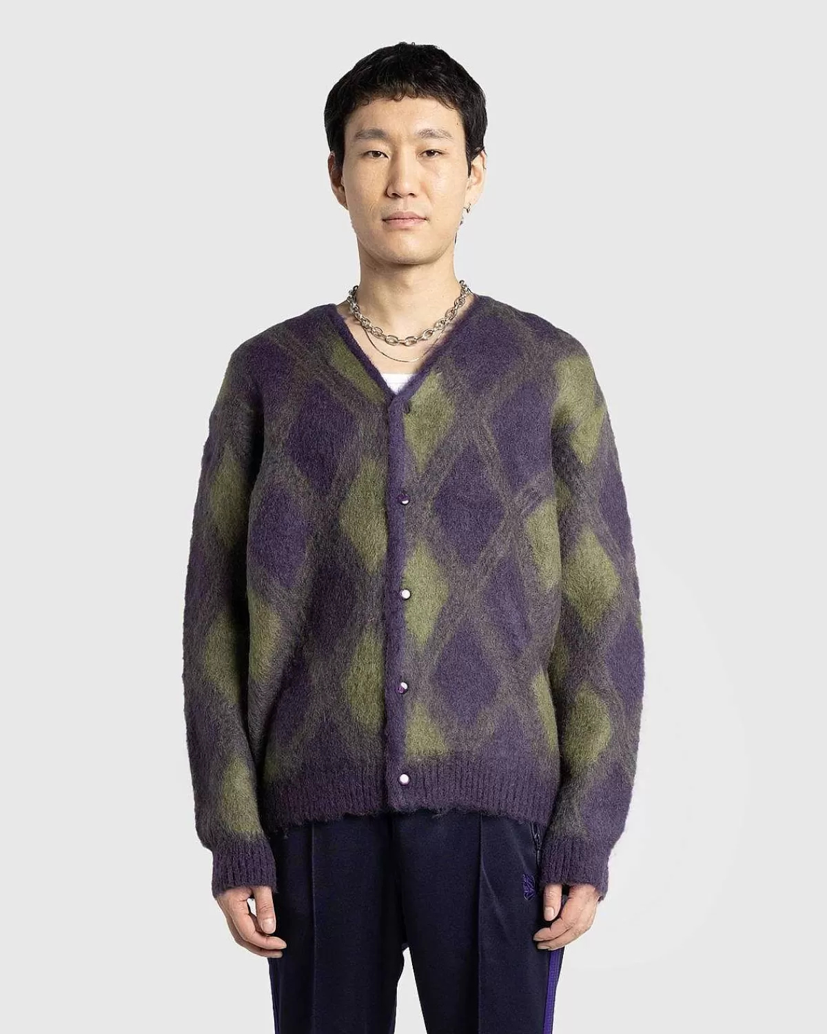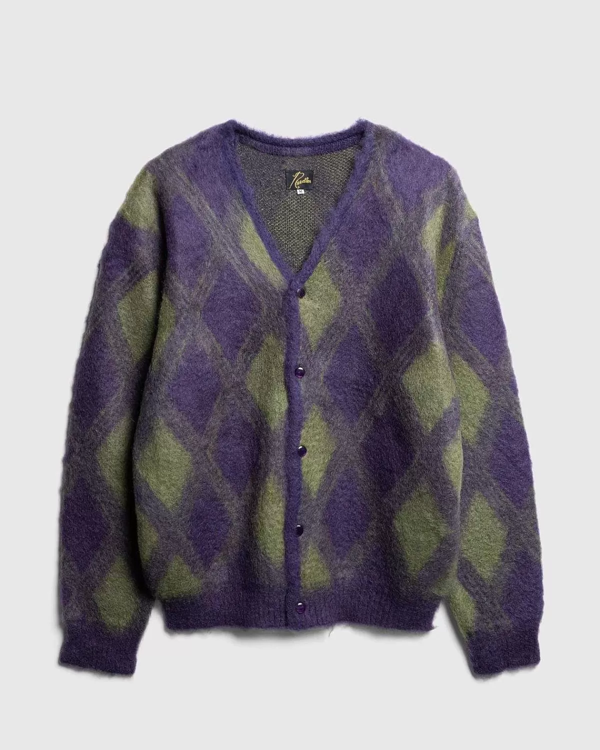 Denne Needles-Cardigan Er Ideel Til At Lægge I Lag Hele Året Rundt Og Er Lavet I Japan Af En Hyggelig Blanding Af Mohair Og Uld. Sweateren Er Detaljeret Med Et Lilla Argyle-Mønster, Som Har Ribkanter Ved Kraven, Manchetterne Og Forneden, Der Er Afsluttet Med En Tonal Knaplukning.