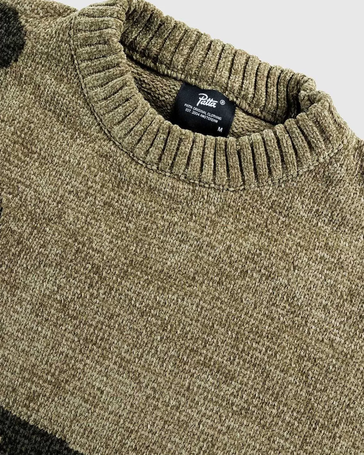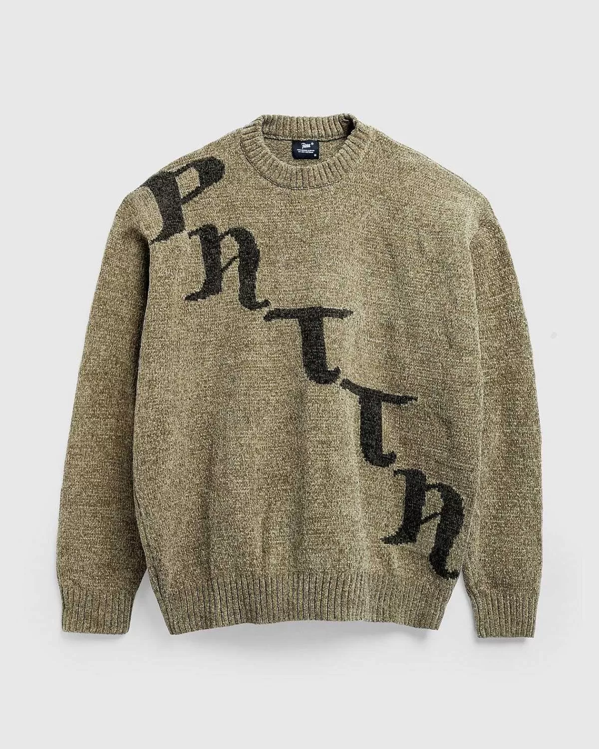 Denne Hyggelige Patta-Trøje Er Skåret Til En Overdimensioneret Pasform Af 100 % Polyester. Beklædningsgenstandens Chenille-Strikkonstruktion Giver Den En Fløjlsagtig Håndfornemmelse. Ribstrikkede Kanter Er Indbygget Ved Rund Hals, Manchetter Og Forneden, Da Stykket Er Færdigt Med Jacquard Patta-Bogstaver På Tværs Af Fronten.
