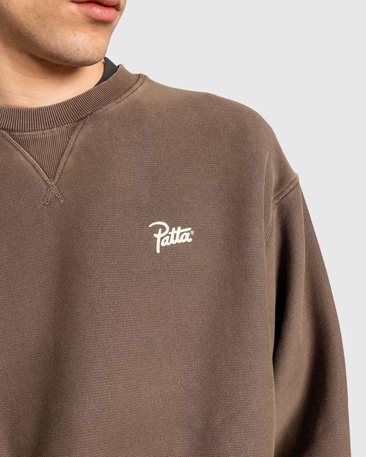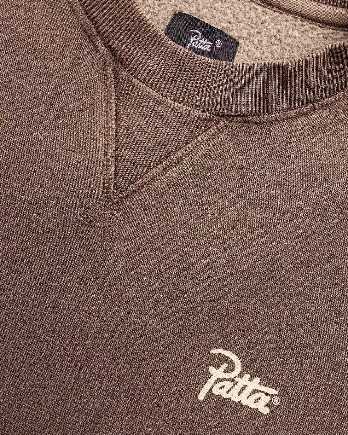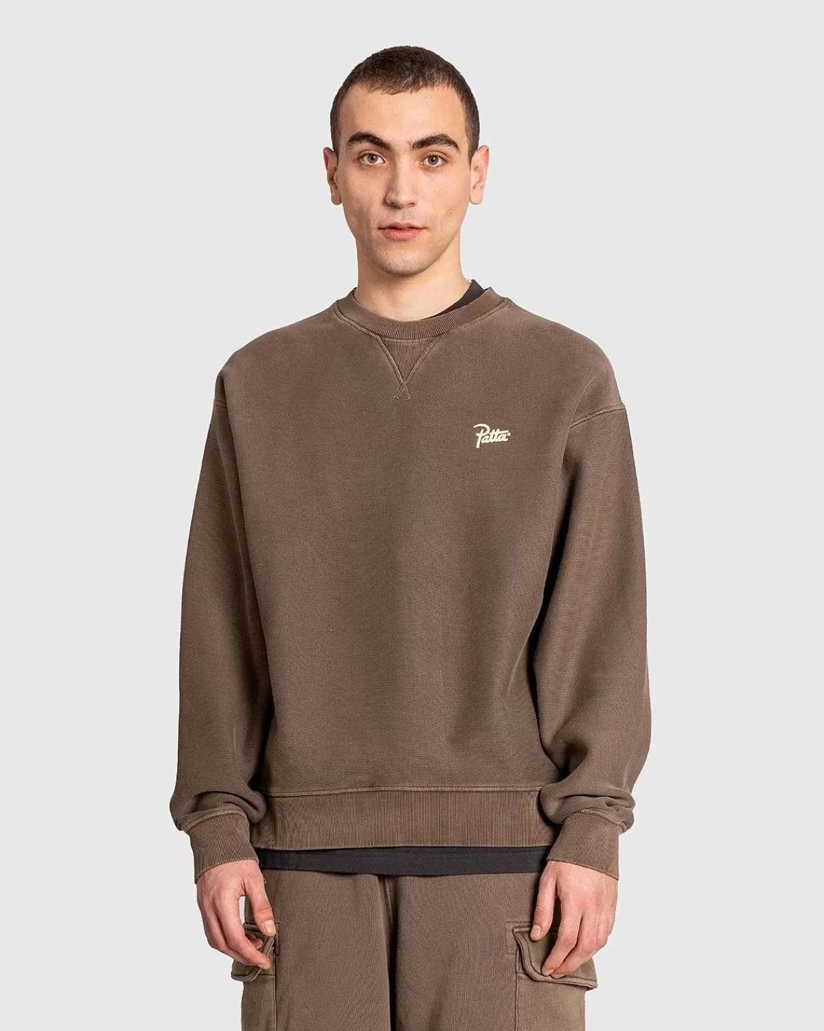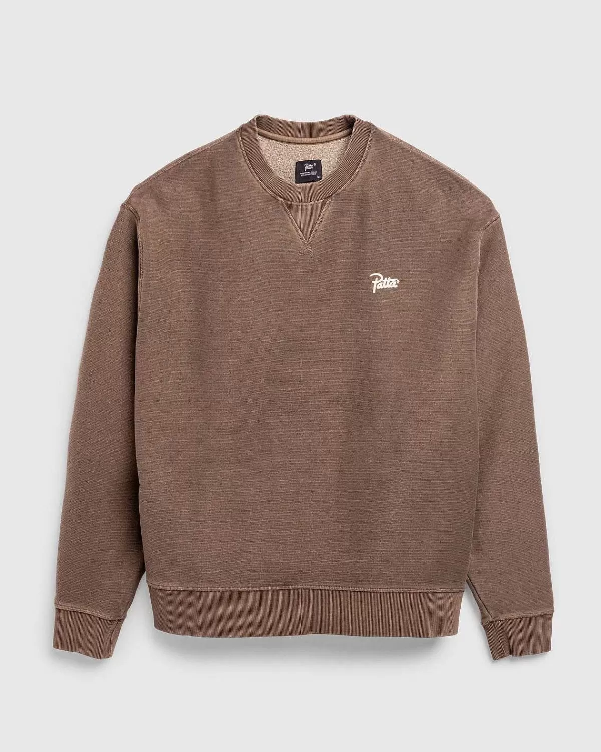 Patta Er Ansvarlig For At Levere Nogle Af De Mest Eftertragtede Basics Inden For Streetwear. Styles Som Den Klassiske Crewneck Ankommer Sæson Efter Sæson I Nye Og Tilbagevendende Farvevarianter, Produceret Af Materialer Af Høj Kvalitet. Denne Særlige Version Af Sweateren Er Konstrueret Af En 490 Gsm Brushback-Bomuld Med En Beklædningspigmentfarvet Finish, Med Mærkets Varemærkeskriftlogo Screenet På Brystet.