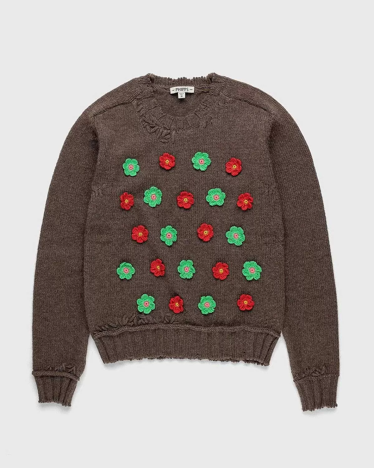 Phipps Trækker Fra “Flower Power”-Sloganet Fra 1960’Erne Og 70’Erne, Der Var Et Symbol På Ikke-Voldelig Ideologi For At Skabe Blomsterstrik Fra Sin Nye Sæsonkollektion. Etisk Strikket I Italien Fra En Superfin Alpaka- Og Økologisk Uldblanding, Crewneck-Trøjen Er Detaljeret Med Store, Distresserede Syninger Og Ribkanter, Dekoreret Med Farverige Håndhæklede Blomster På Hele Fronten. Stykket Er Skåret I En Afslappet, Boxy Pasform Med Sænkede Skuldre For At Sikre Hygge.