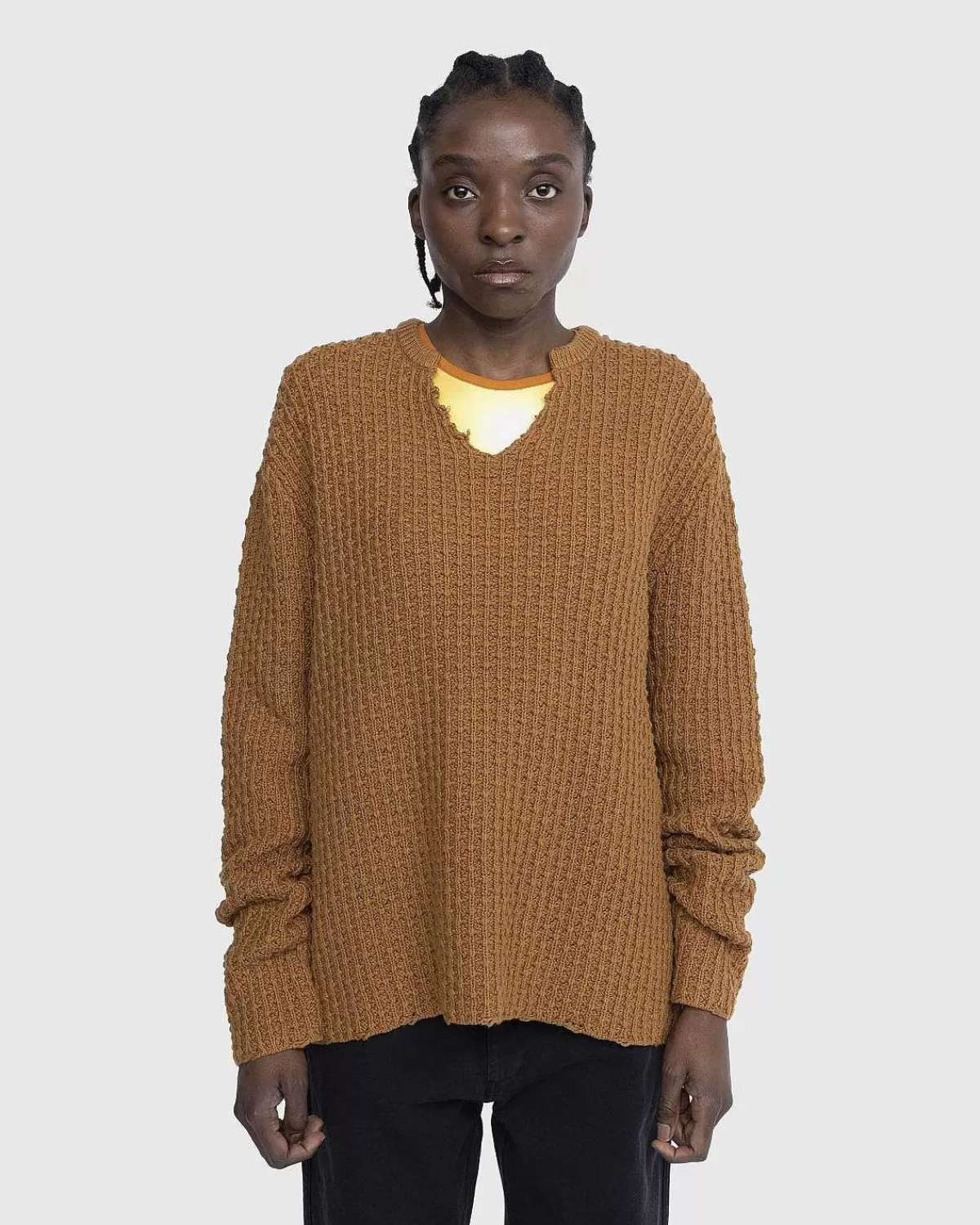 Stockholm Surfboard Clubs V-Halstrøje Er En Betydeligt Behagelig Stil Produceret I En Løs Bomuldstrik. Tilbydes I En Dyb Orange Farvevariant, Det Flersæsonbetonede Stykke Er Defineret Ved Opskårne Detaljer Ved Kraven, Med En Overdimensioneret Pasform Til En Ekstra Hygge.
