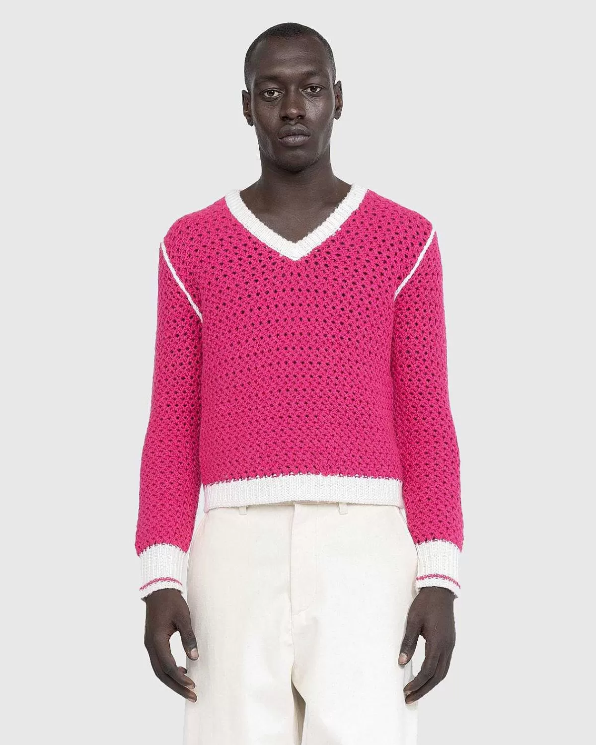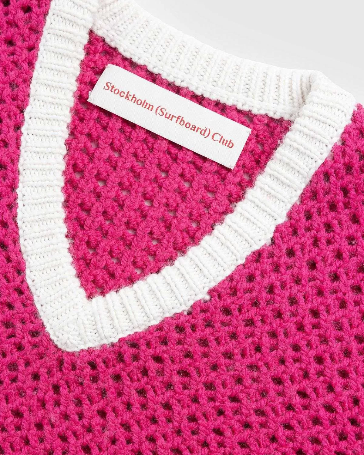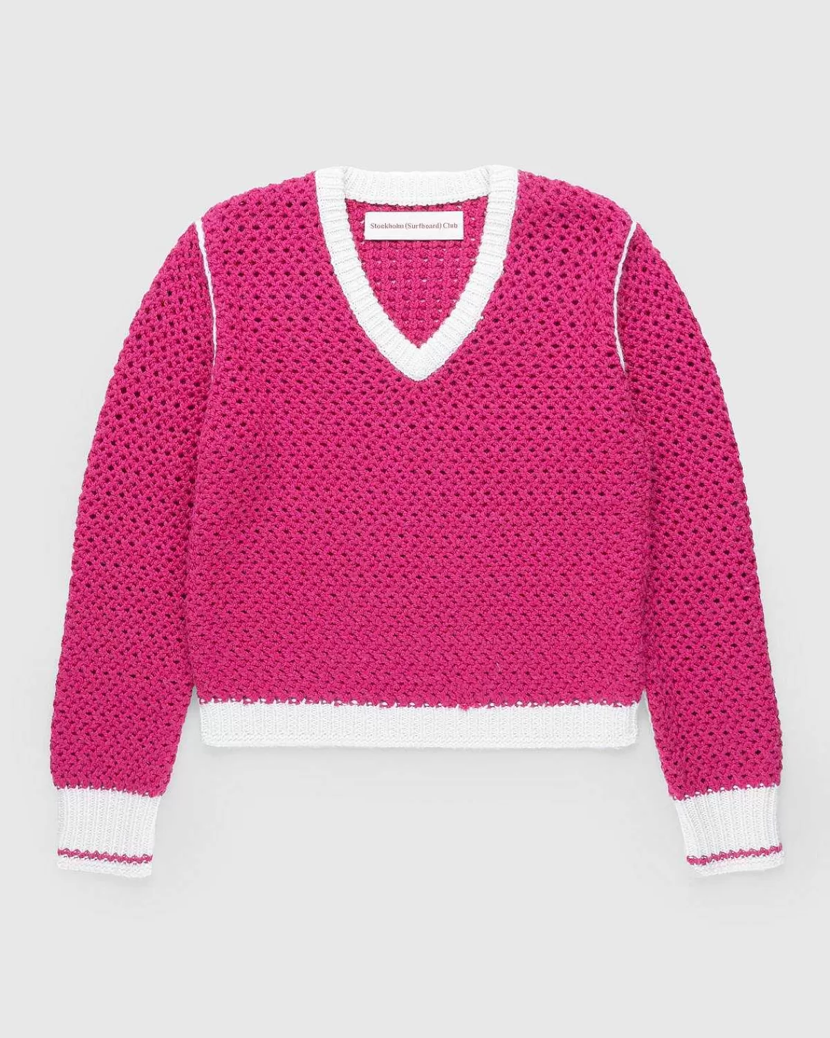 Strik>Stockholm Surfboard Club Strikket V-Hals Sweater Flou Pink