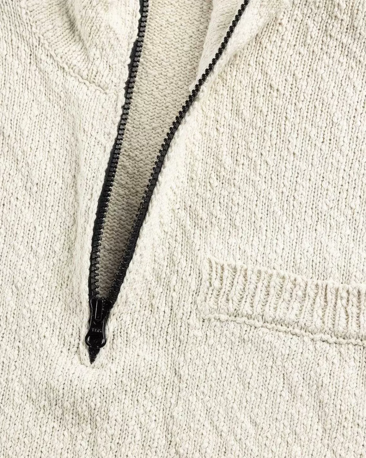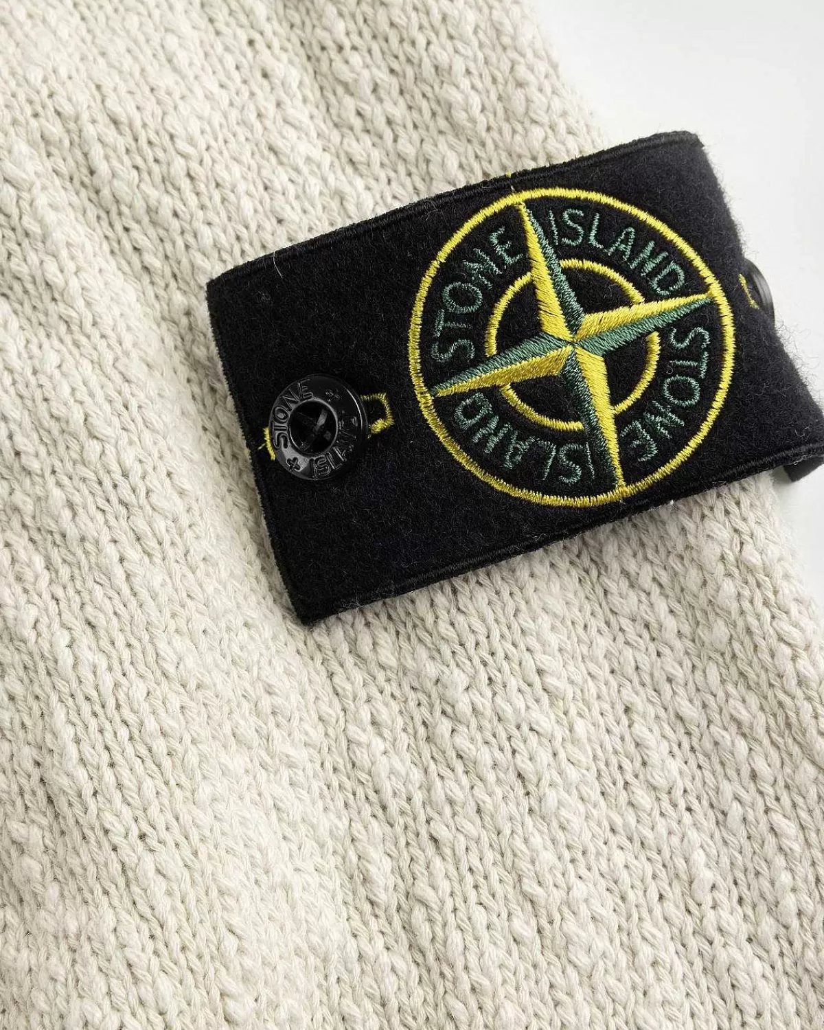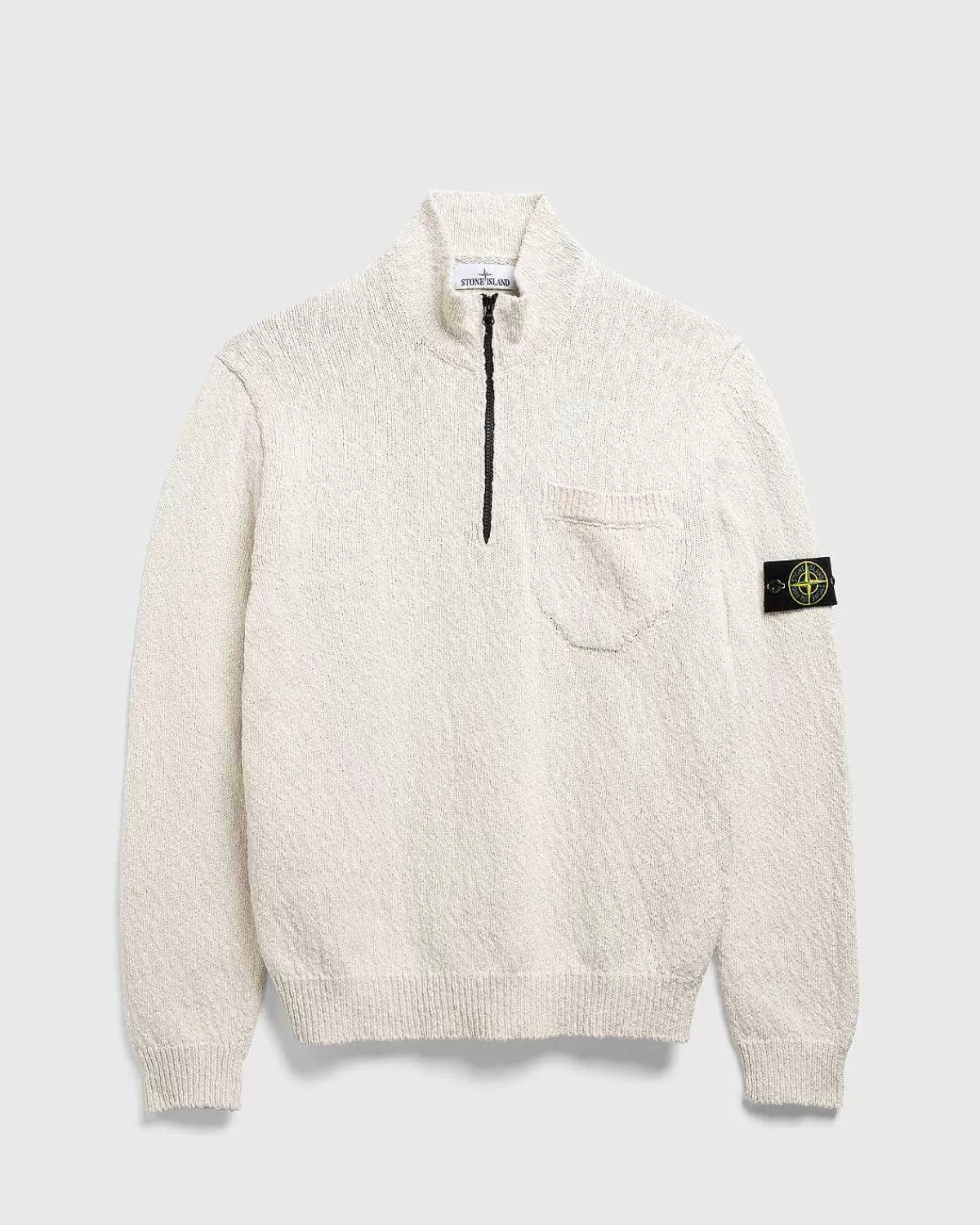 Denne Hyggelige Stone Island Half-Zip Er Strikket I Et Blødt Bomuld-Linned-Blandingsstof. Den Er Udstyret Med En Kammertjener-Krave, Halv-Lynlås-Halslukning, Ribkanter Og En Enkelt Brystlomme. For At Mærke Silhuetten Minimalt, Er Et Aftageligt Stone Island-Logomærke Indbygget På Venstre Ærme.