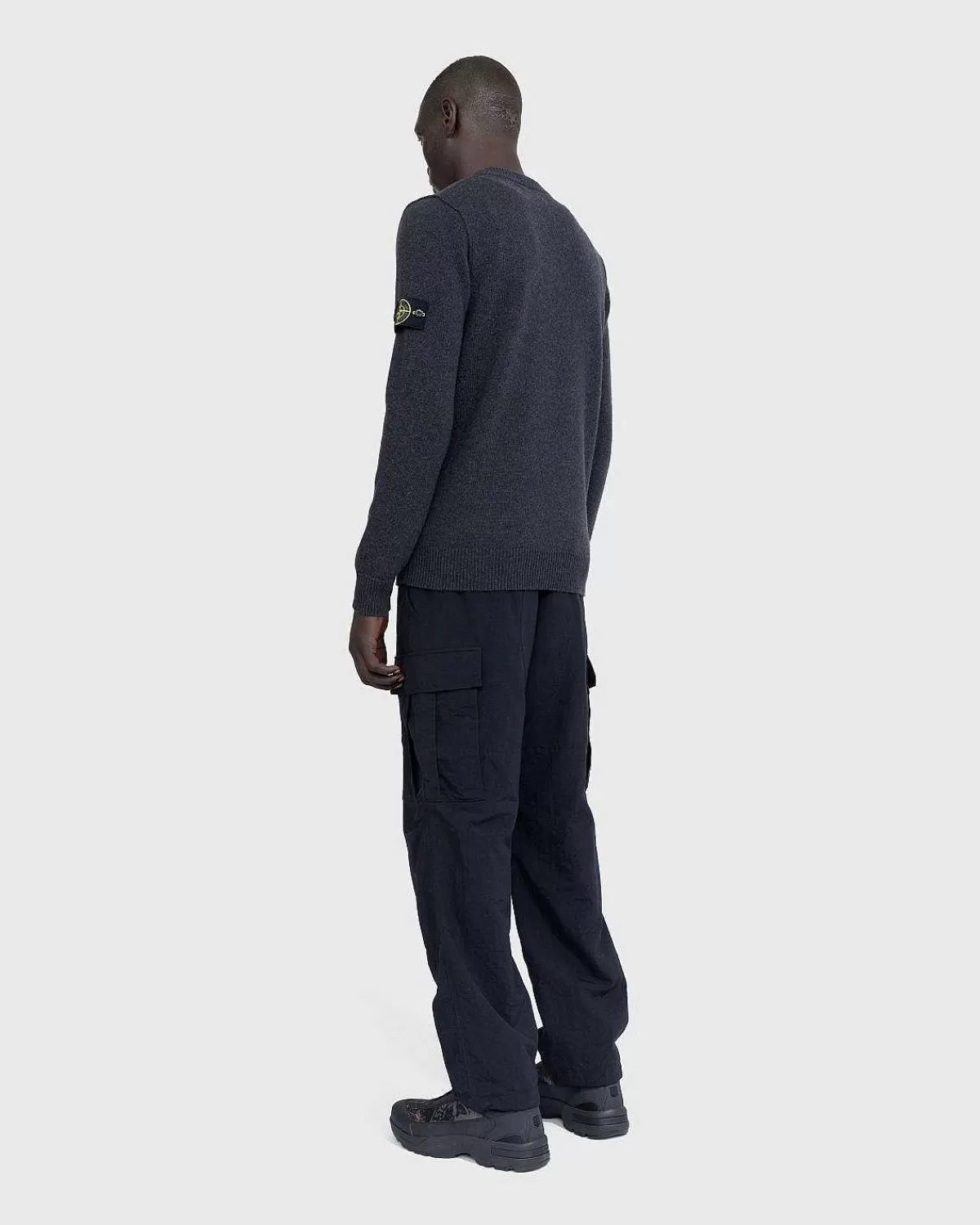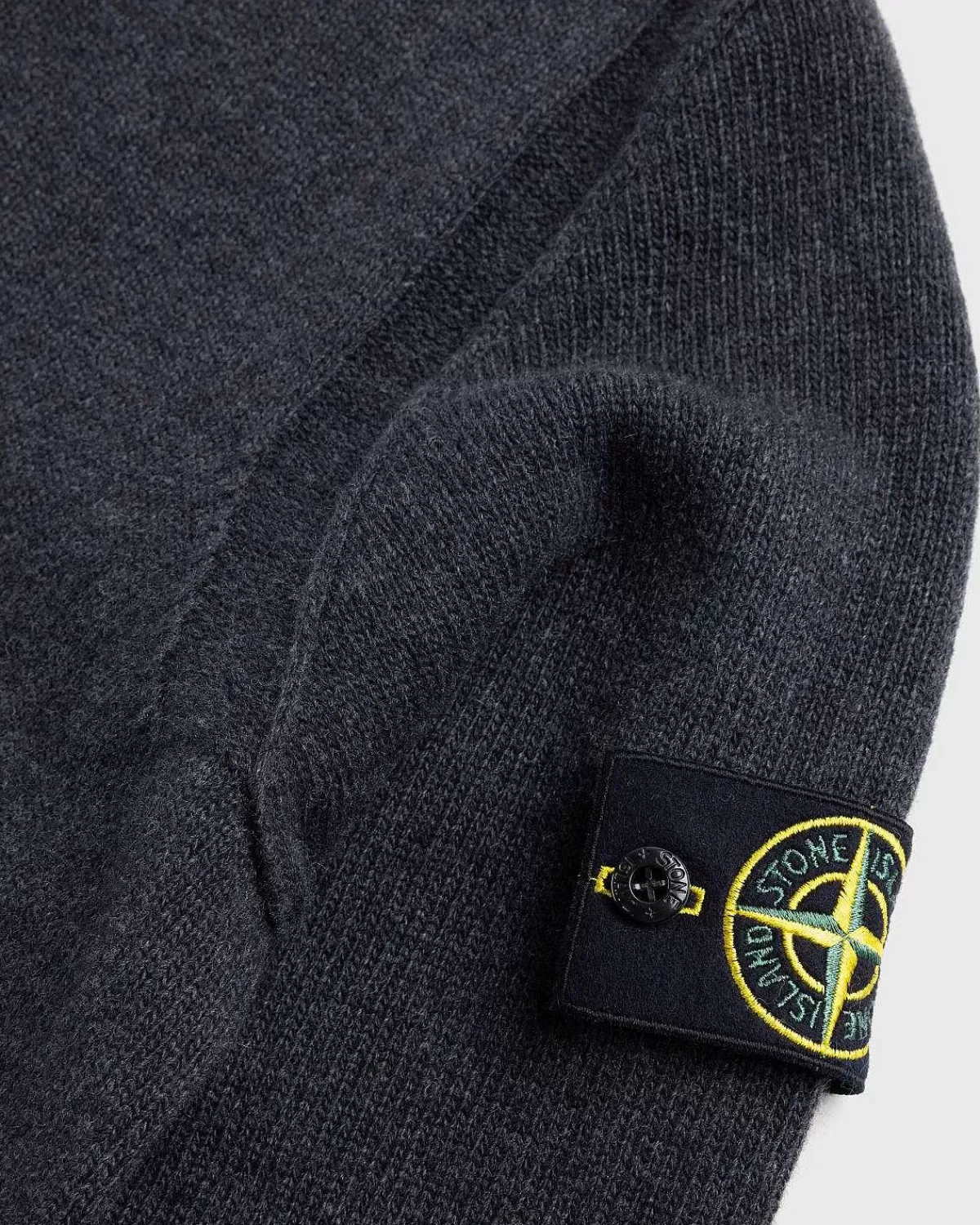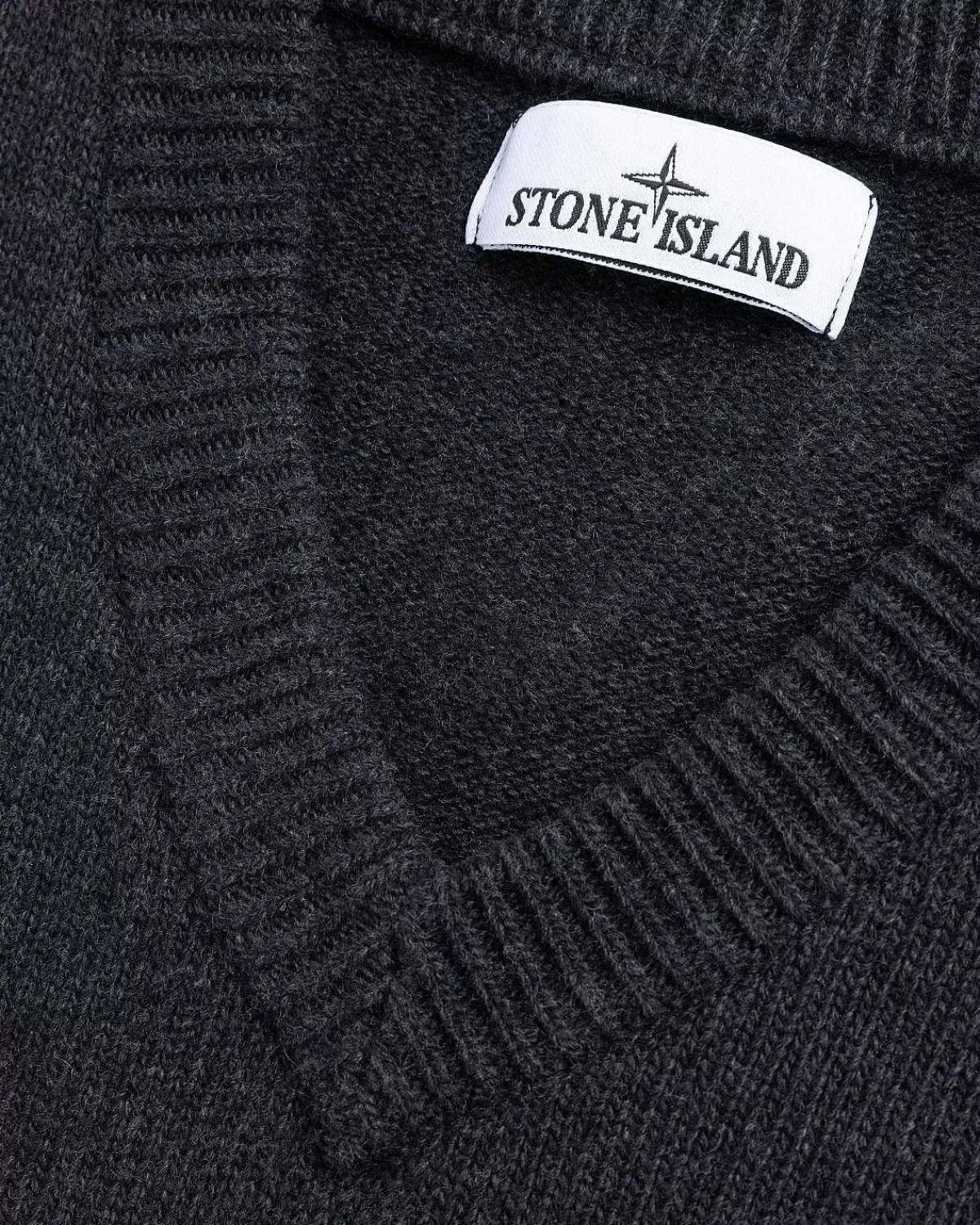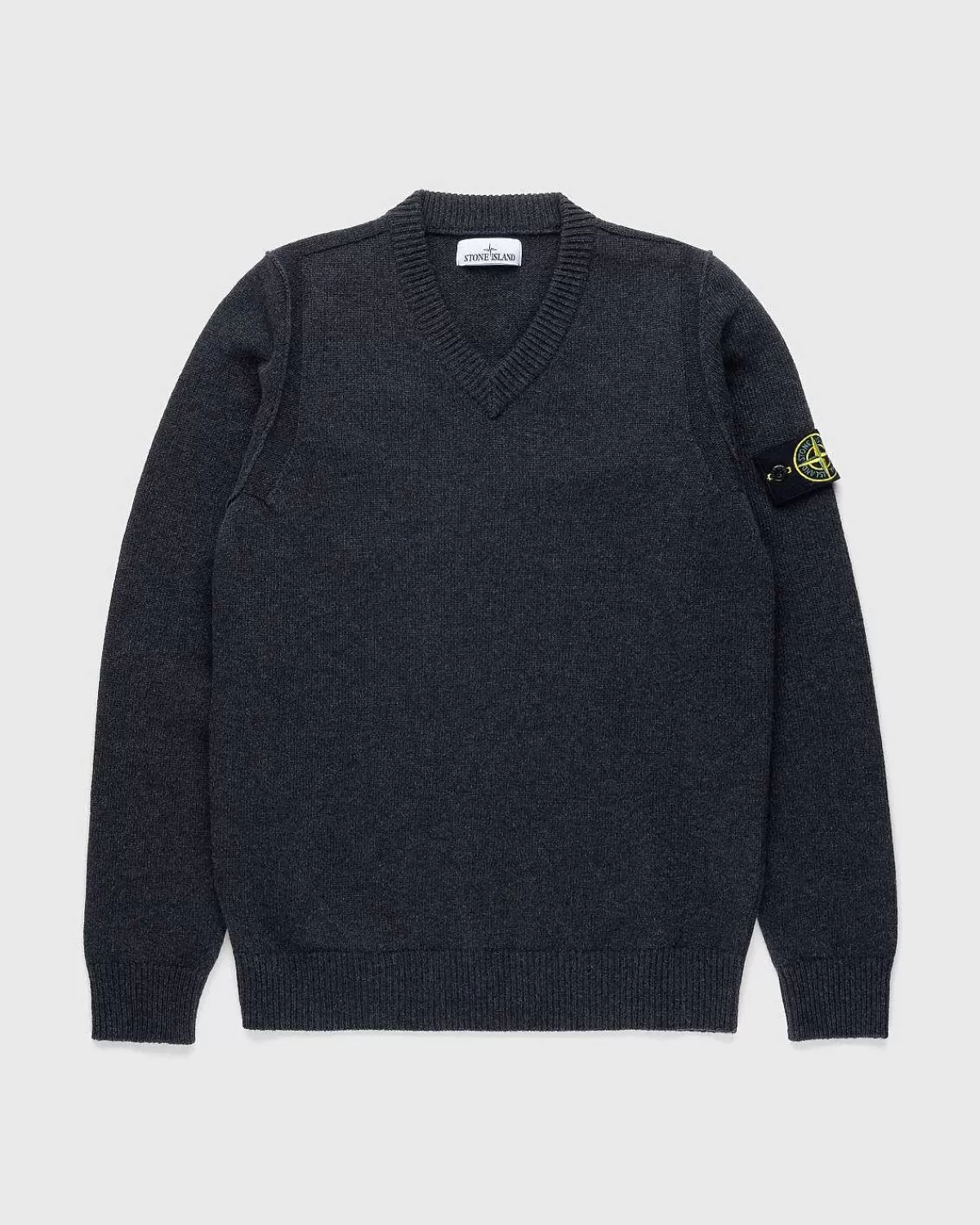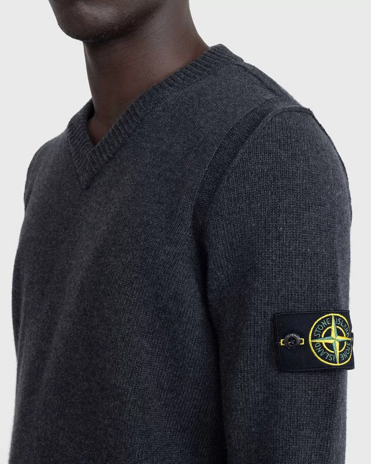 Strik>Stone Island V-Hals Sweater Melange Charcoal