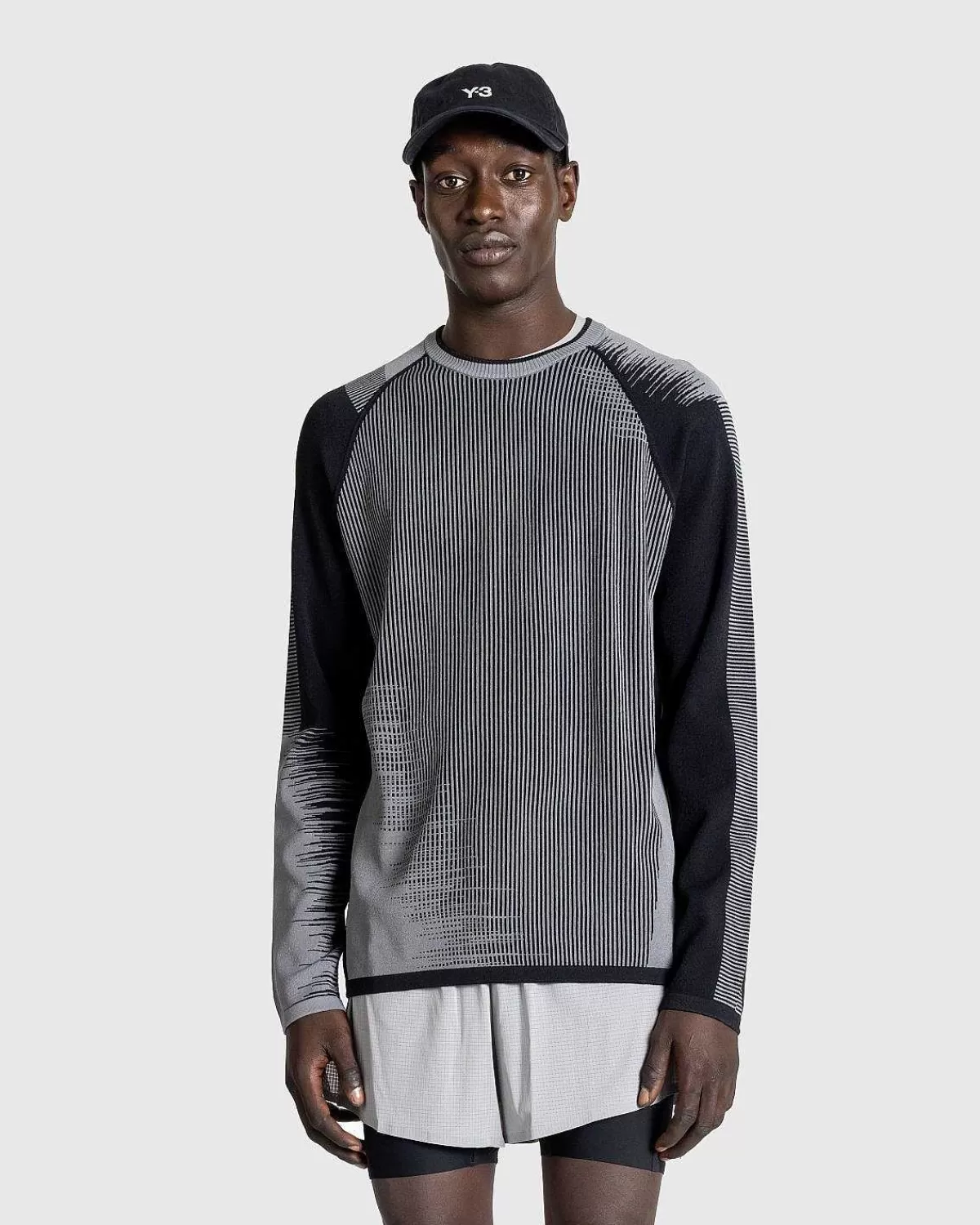 Y-3’S Logostrikkede Sweater Er Et Iøjnefaldende Stykke Fra Sin Seneste Kollektion. Den Fladstrikkede Top Er Lavet Af En Elastisk Viskoseblanding Og Er Prydet Med Gradientgrafik Overalt Med Mærkets Logo Strikket På Bagsiden.