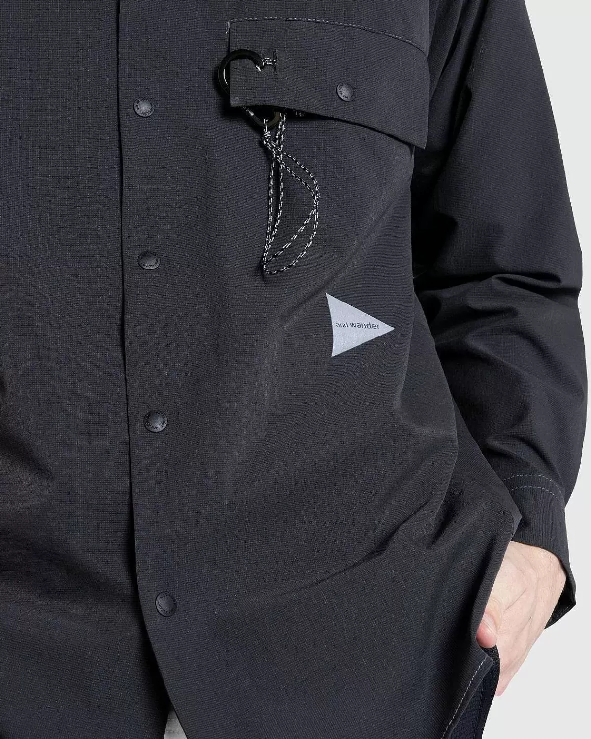 Denne Og Wander-Overtøjsstil Er Lavet Af Et Vandafvisende, Strækpolyestermateriale, Med Et Mønsterdesign, Der Forbedrer Bevægelsesfriheden. Ventilationshuller Er Indbygget Overalt For At Forbedre Åndbarheden, Da Stilen Så Er Udstyret Med En Standkrave, Fast Hætte, Knaplukning Foran Og Knapmanchetter. En Klaplomme Er Påsat På Brystet, Hvor Du Også Finder En Mærket Karabinhage.