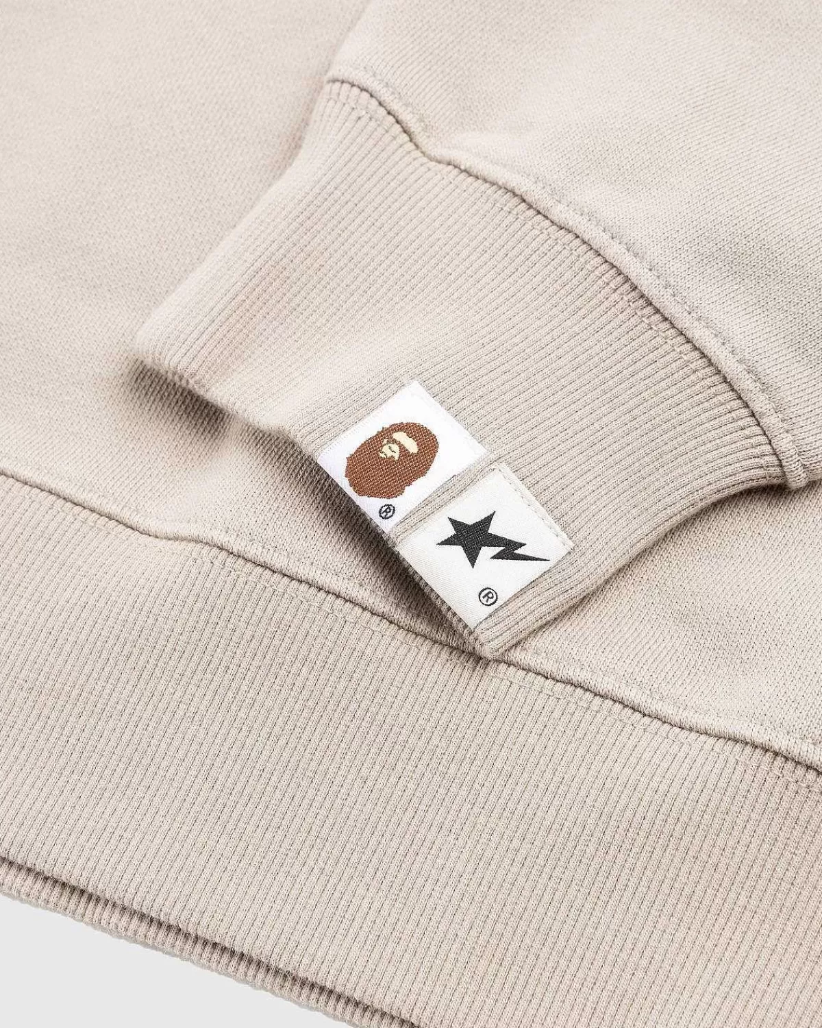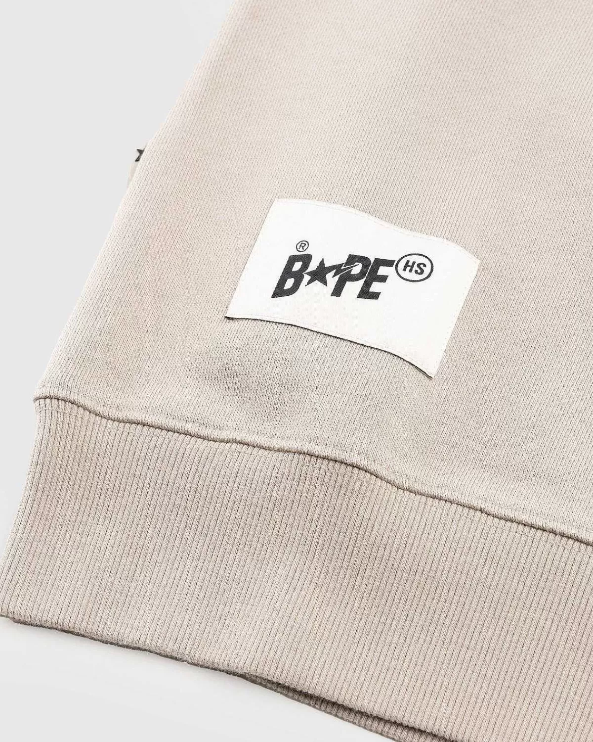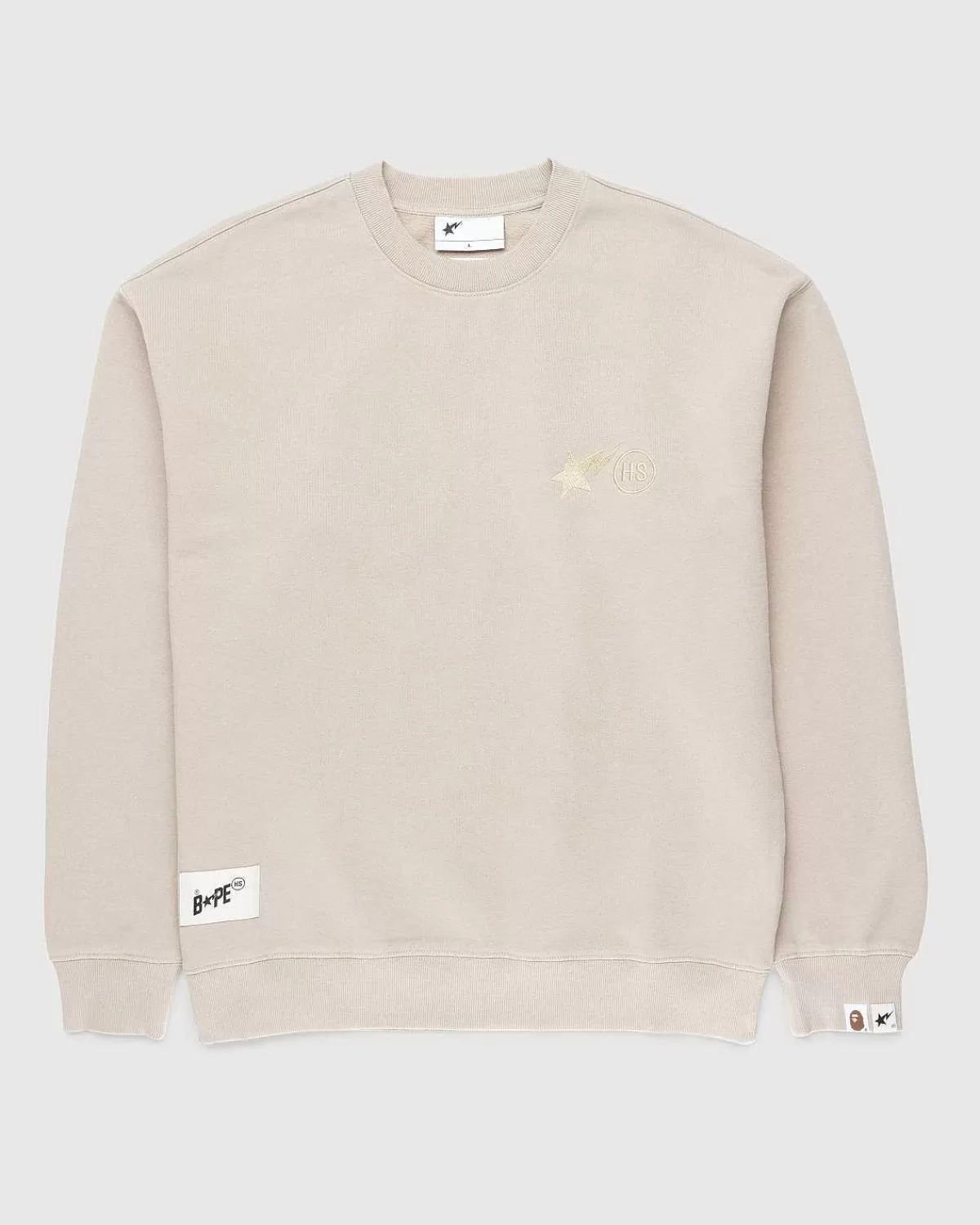 Den Kraftigt Vaskede Crewneck Ankommer Som En Del Af Vores Seneste Samarbejde Med Bape I Blødt Fleecestof. Den Langærmede Top Er Udsmykket Med Tonale Co-Brandede Logoer Trykt På Bagsiden Og Broderet På Brystet. Traditionelle Elementer Som Den Ribbede Krave, Søm Og Manchetter Fuldender Stilen, Mens Vævede Mærkemærker Giver En Kontrast I Farven.