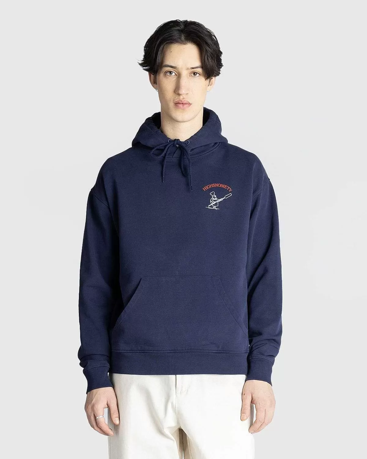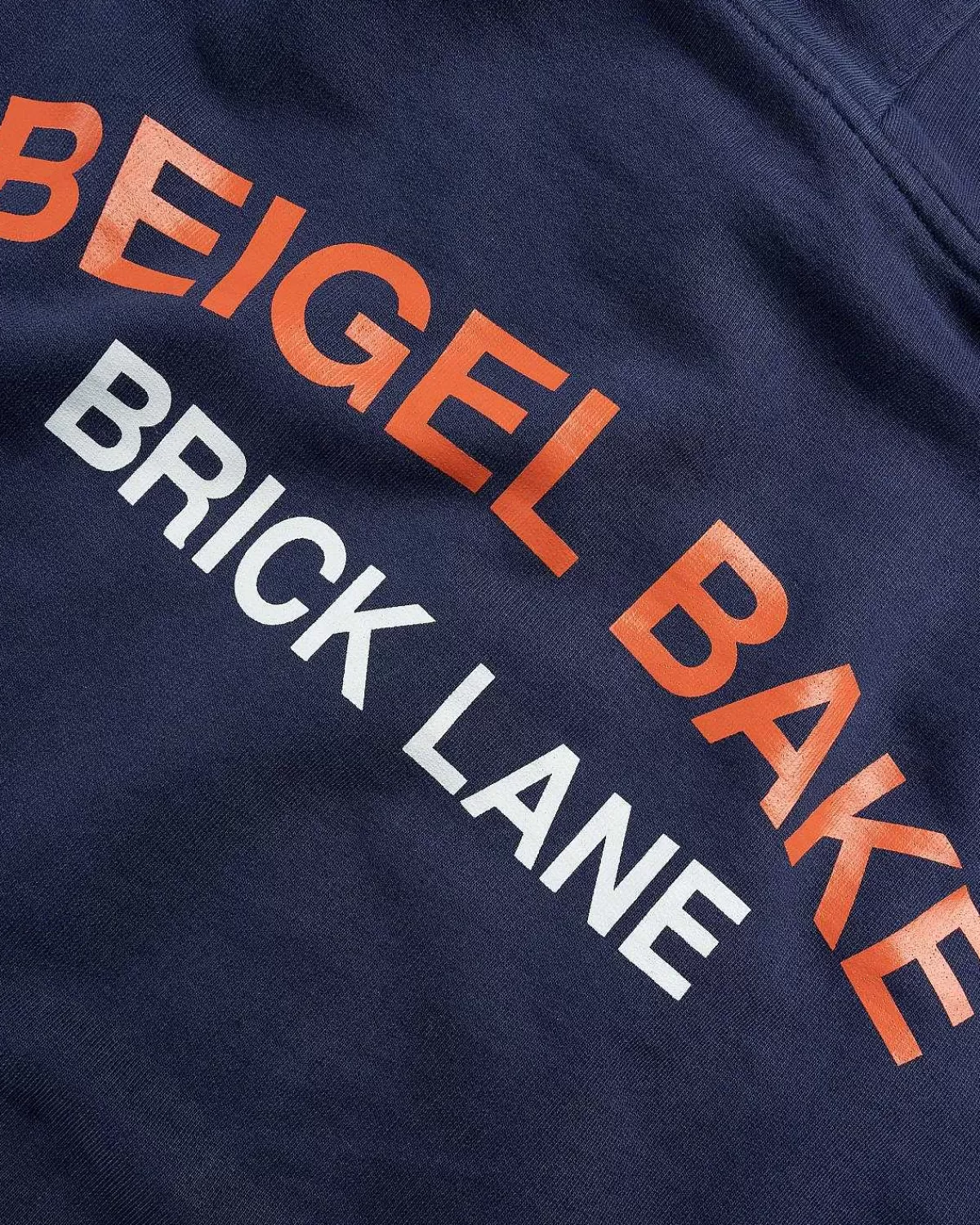 Denne Navy-Hættetrøje Er Lavet I Samarbejde Med Beigel Bake, Det Berømte East End-Spisested Kendt For Sin Salt Beef Bagel Og 24/7-Adgang. Den Tunge Hættetrøje Er Lavet Udelukkende Af Bomuld Og Har Co-Brandede Logoer På Brystet Sammen Med Et Tryk På Ryggen.