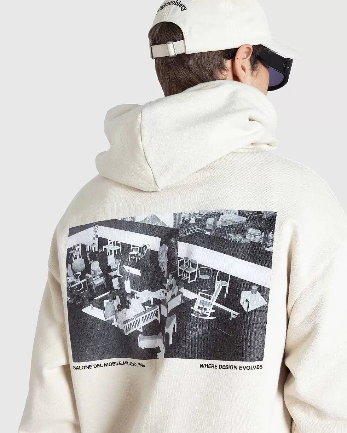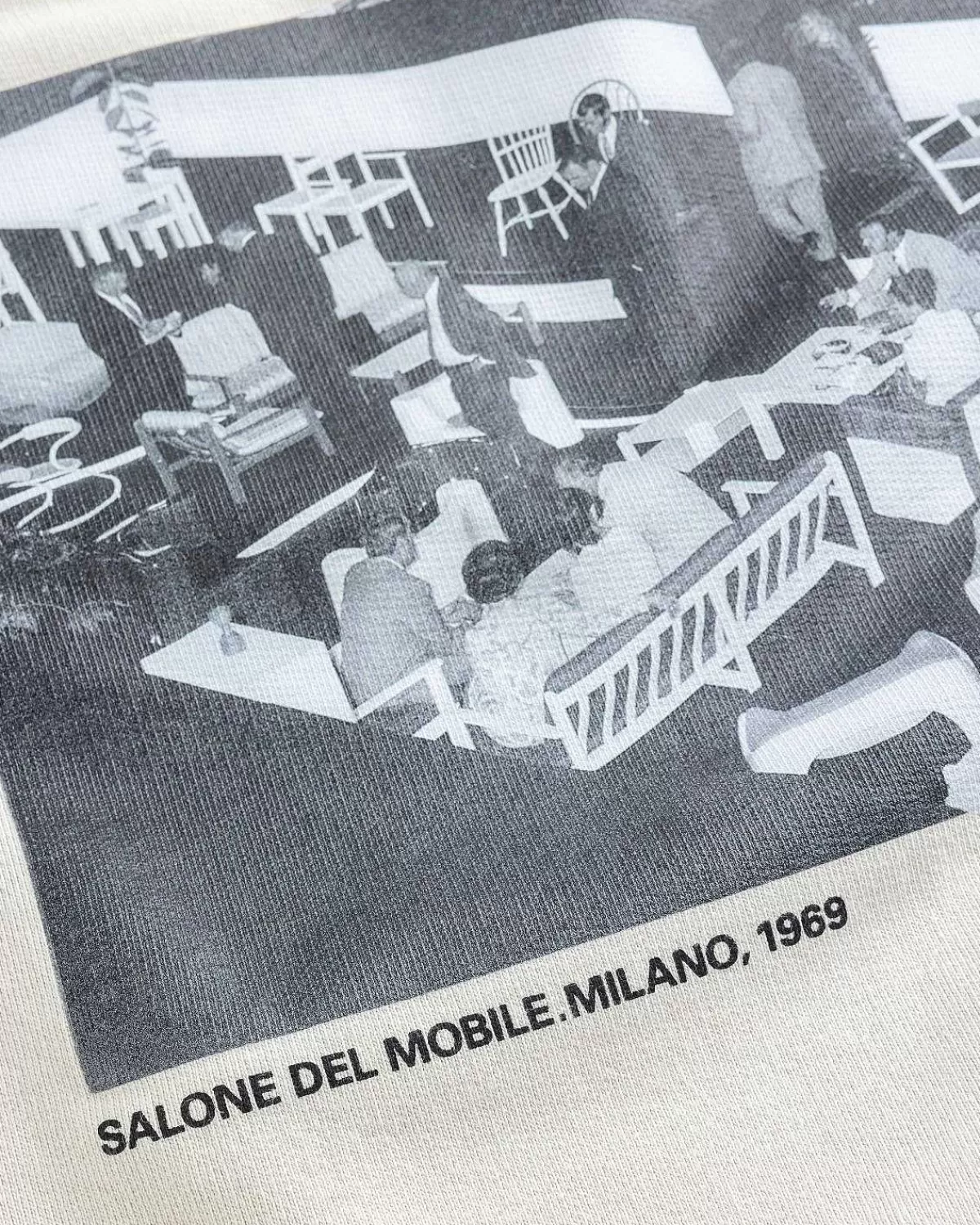 Arkiv-Hættetrøjen Går Tilbage Til Salone Del Mobiles Tidlige År. Lavet Af Kraftigt Bomuld, Bagsiden Af Denne Hættetrøje Viser Et Stort Billede Af Messen Taget I 1969.