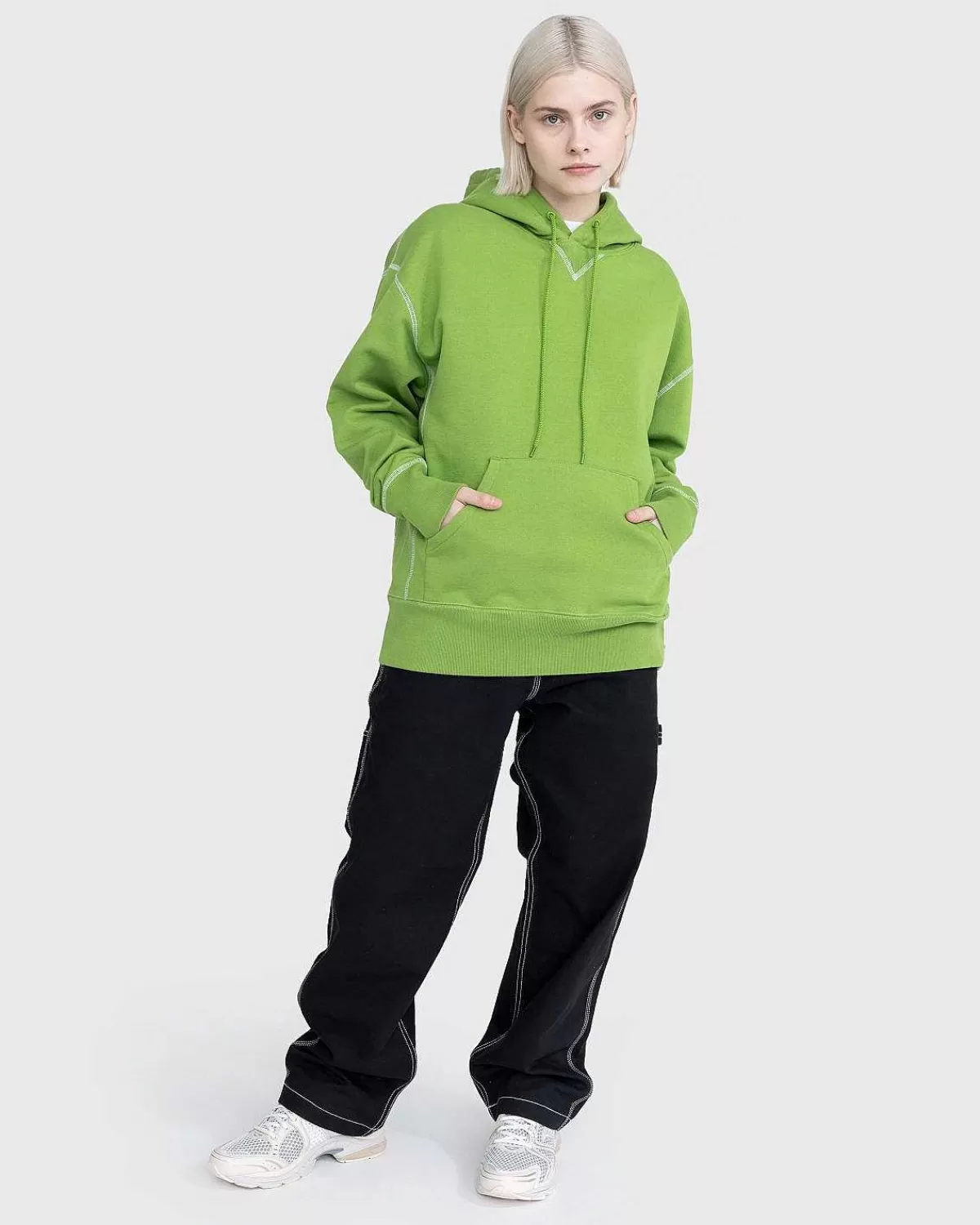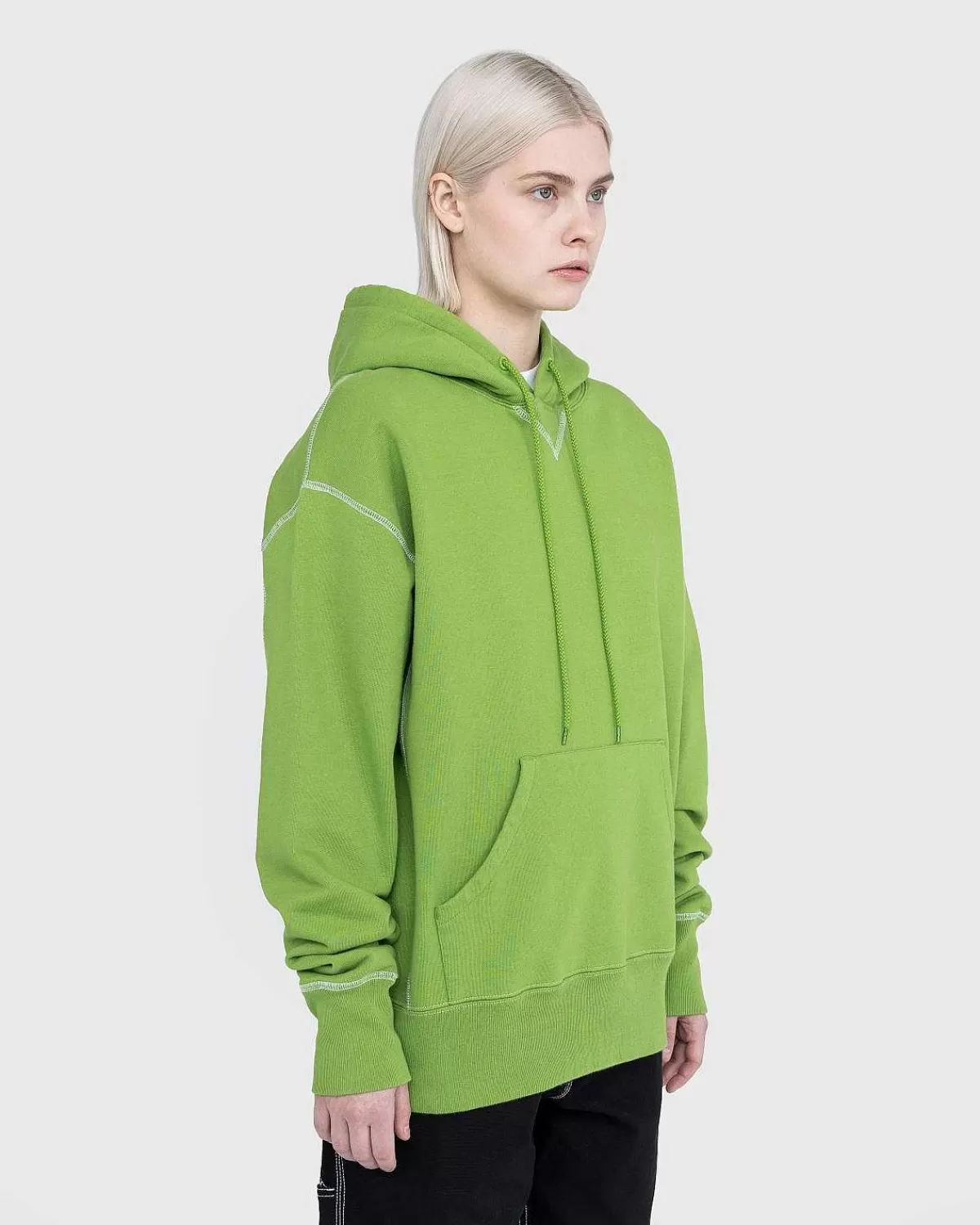 Produceret I Et Slidstærkt Fleecestof, Hættetrøjen Med Kontrastsøm Er Vores Bud På En Garderobe. Med Traditionelle Designelementer, Såsom En Justerbar Hætte Med Snoretræk, V-Kile Ved Halsen Og Frontlomme, Er Den Blevet Forhøjet Gennem Hvide Kontrastsømme Og Tykke Ribkanter. Hætte-Stilen Er Skåret I En Lidt Overdimensioneret, Boxy Pasform. Branding Er Minimal Af Design, Implementeret Som Et Lille Highsnobiety-Flag.