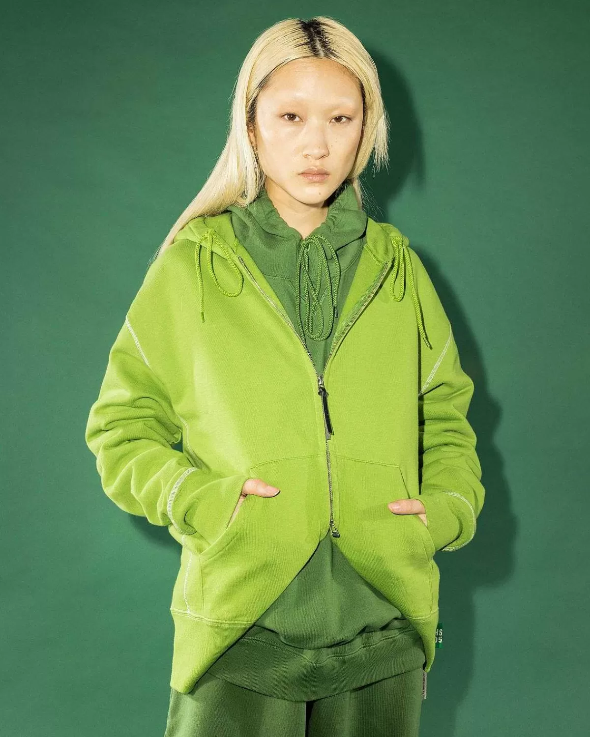Sveder>Highsnobiety Fleece-Haettetroje Med Kontrastsom Gron
