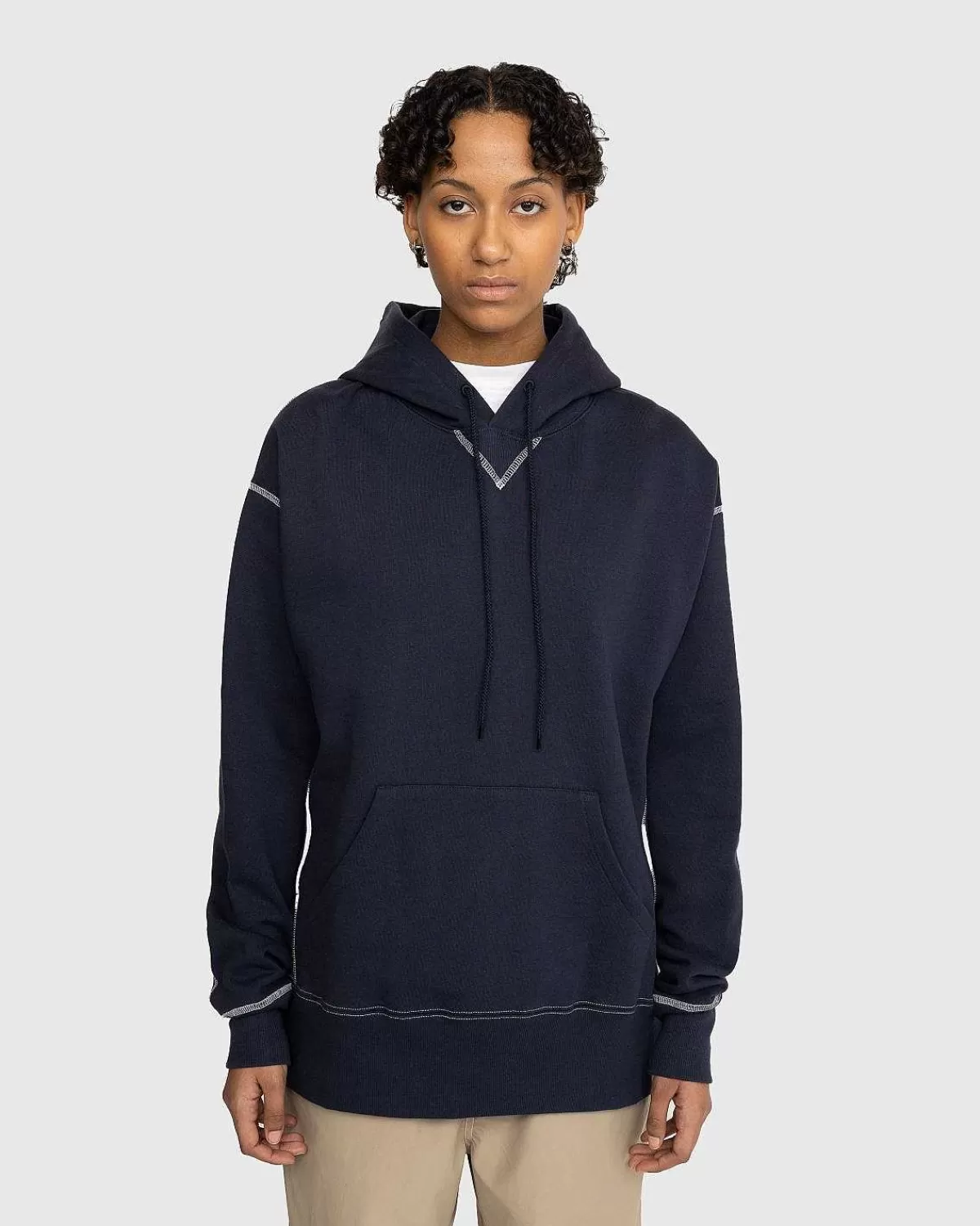 Produceret I Et Slidstærkt Fleecestof, Hættetrøjen Med Kontrastsøm Er Vores Bud På En Garderobe. Med Traditionelle Designelementer, Såsom En Justerbar Hætte Med Snoretræk, V-Kile Ved Halsen Og Frontlomme, Er Den Blevet Forhøjet Gennem Hvide Kontrastsømme Og Tykke Ribkanter. Hætte-Stilen Er Skåret I En Lidt Overdimensioneret, Boxy Pasform. Branding Er Minimal Af Design, Implementeret Som Et Lille Highsnobiety-Flag.