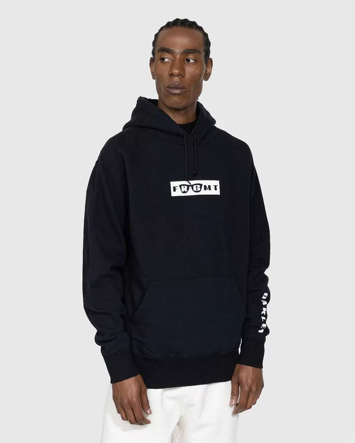 Oakley X Fragment Logo-Hættetrøjen Er Et Nik Til Hiroshi Fujiwaras Rene Linjer. Den Hyggelige Trøje Er Tilgængelig I Sort-Hvide Farver Og Er Prydet Med Kontrasterende Grafiske Print På Forsiden, Bagsiden Og Ærmet, Hvor Du Finder De Ikoniske Oakley Frogskin-Solbriller, Co-Branding Og Yderligere Ikonografi. Beklædningsgenstanden I Begrænset Udgave Er Detaljeret Med Traditionelle Hættetrøjedesignelementer, Herunder En Justerbar Hætte Med Snoretræk, Ribstrikkede Kantlister Og En Kængurulomme Og Har En Standard Boxy-Pasform.