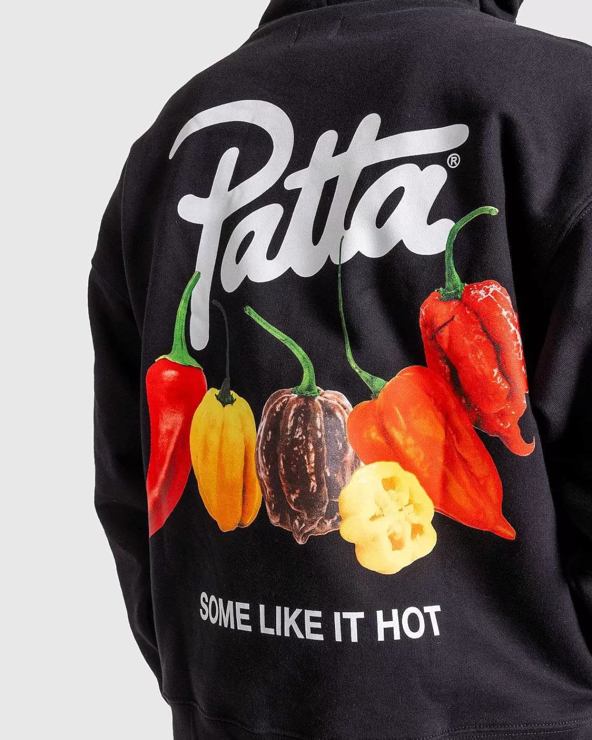 The Some Like It Hot-Hættetrøje Er Lavet Af 450 Gsm Blød, Børstet Bomuld Og Kommer I En Afslappet, Boxy Pasform Med Ribmanchetter Og Kant. Detaljeret Med Pattas Signaturskriptlogo På Brystet, Den Tunge Hættetrøje Har En Stor Broderet Grafik På Bagsiden.