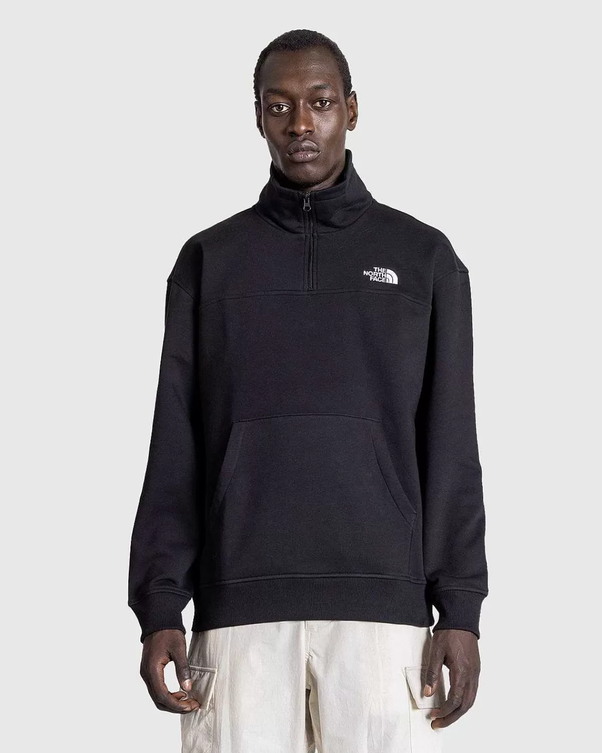 Denne Tnf Quarter-Zip Er Designet Til Komfort Året Rundt Både På Og Uden For Stien Og Er Konstrueret Af Et Varmt, Blødt Bomulds-Polyester-Blandingsstof. Den Har En Mock-Halskrave Med En Omvendt Spole Med Kvart Lynlås, Ribstrikket Kant Og En Frontlomme. Stykket Er Færdig Med North Face-Logoerne Broderet På Venstre Bryst Og Højre Skulder Bagpå.