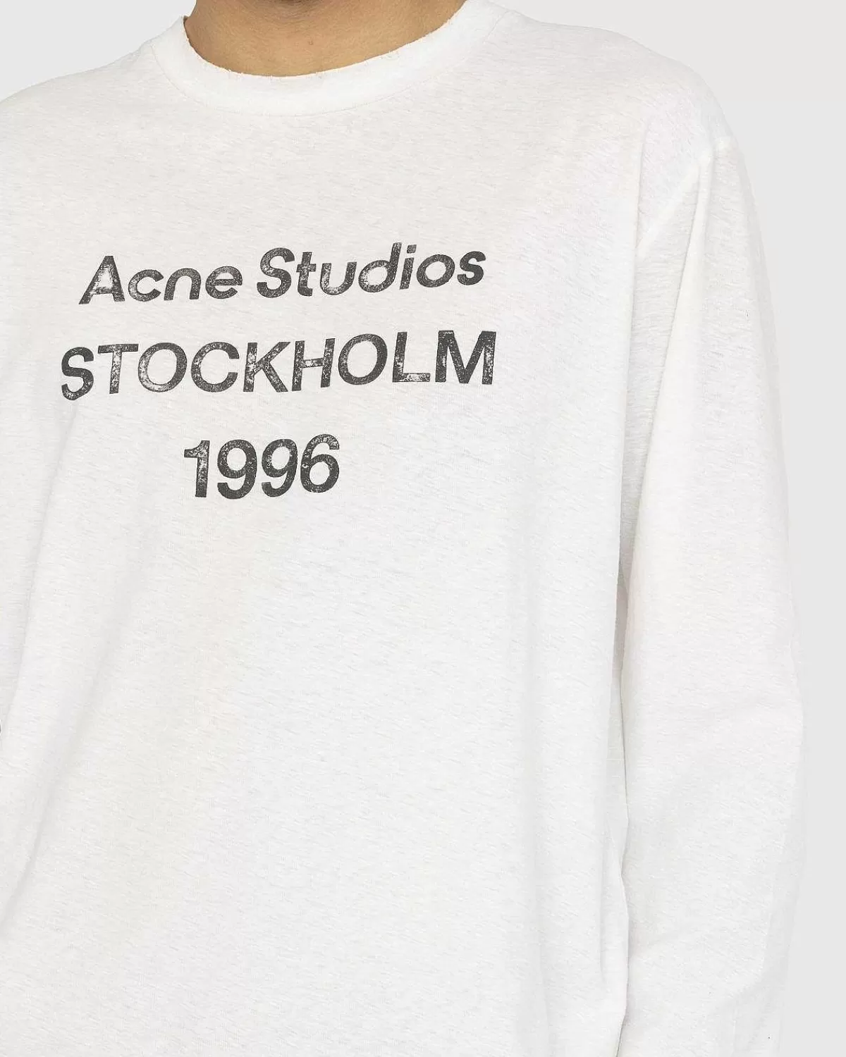 En Essentiel Stil For Fans Af Det Svenske Kultmærke, Denne Langærmede T-Shirt Indeholder Acne Studios Logo Stemplet Foran Og I Midten Med Det År, Den Blev Grundlagt. T-Shirten Er Lavet Af En Bomulds- Og Hampblanding Med En Unik Sprøjtefinish, Og Den Er Færdig Med Distresserede Detaljer Ved Halsudskæringen, Manchetterne Og Forneden.