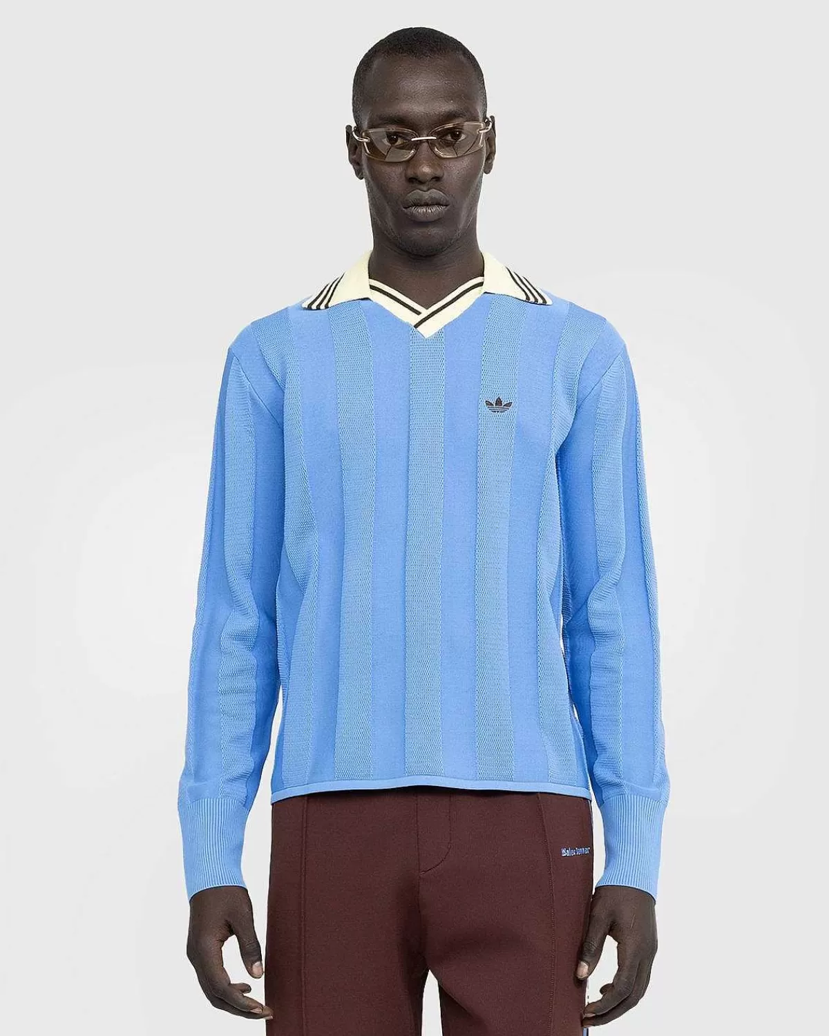 En Inventar I Adidas X Wales Bonner-Kollektionerne, Den Lange Ærme Til Fodbold Er Et Nik Til Den Mest Populære Sport I Verden. Denne Særlige Take Er Produceret I Genbrugspolyester Og Detaljeret Med Strikstriber. Spread-Kraven Er Prydet Med Det Ikoniske Adidas Three Stripes-Motiv, Mens Det Lige Så Genkendelige Trefoil-Logo Kommer Frem Ved Brystet. Et Wales Bonner-Logo Er Påført Bagsiden Af Skjorten For At Afrunde Designet.